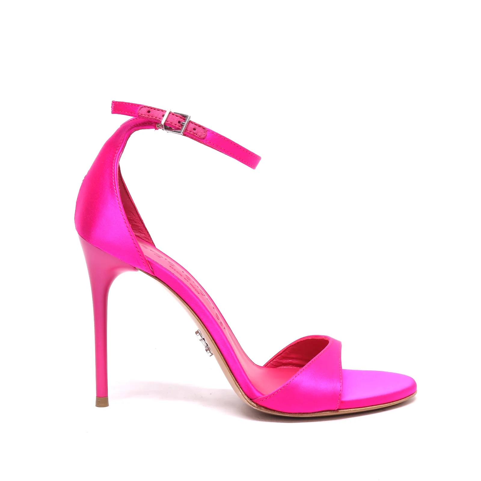 Sandalo in raso fucsia con laccio alla caviglia