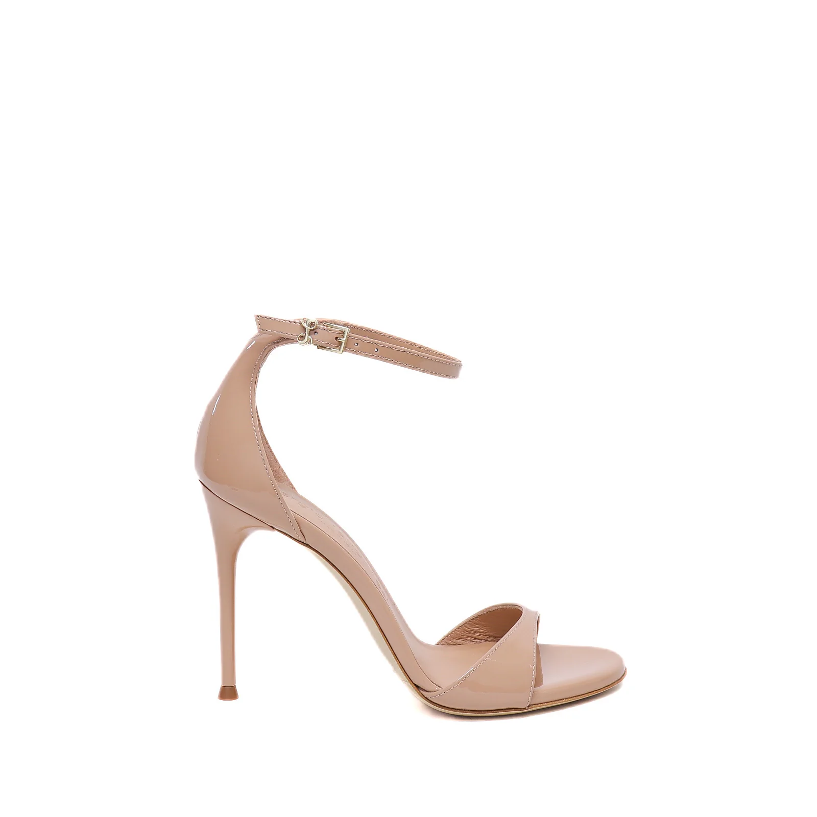 Sandalo in pelle verniciata nude con cinturino alla caviglia