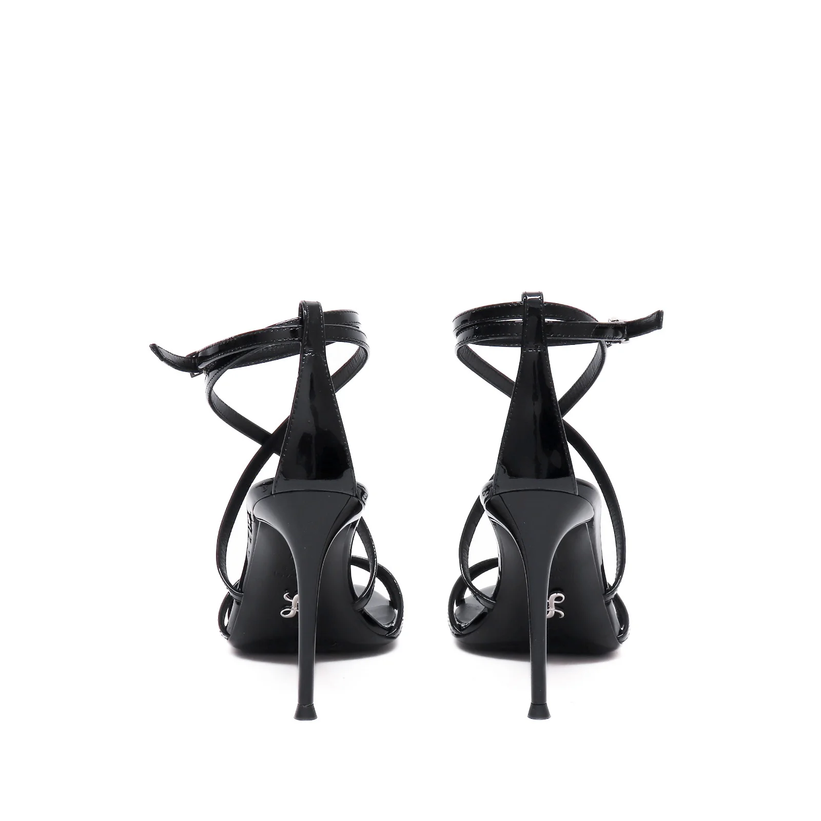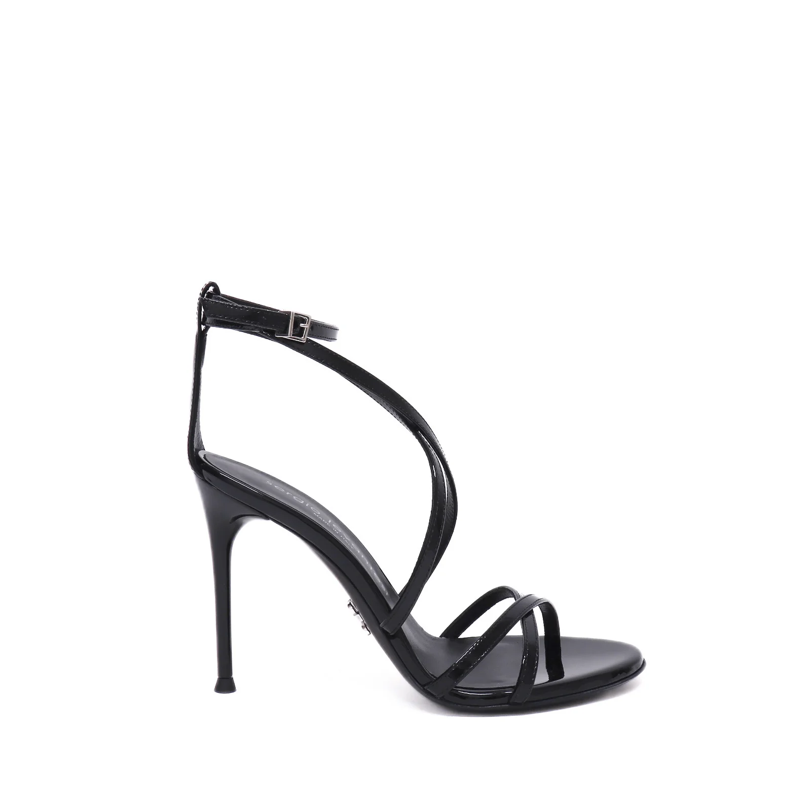 Sandalo donna in pelle verniciata neraFodera in pelle Suola in cuoioTacco 11 cmProdotto in ItaliaID Prodotto : REBEL PAINT NEROSKU : REBEL-N