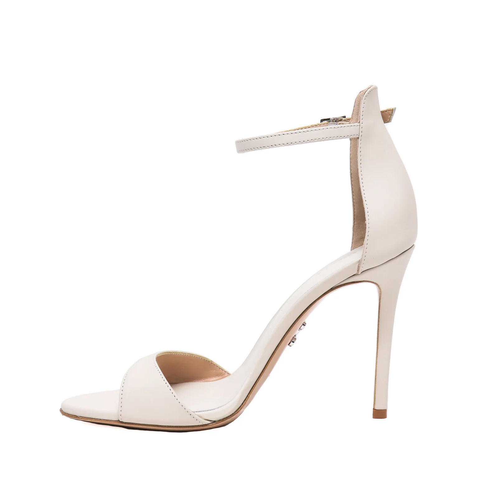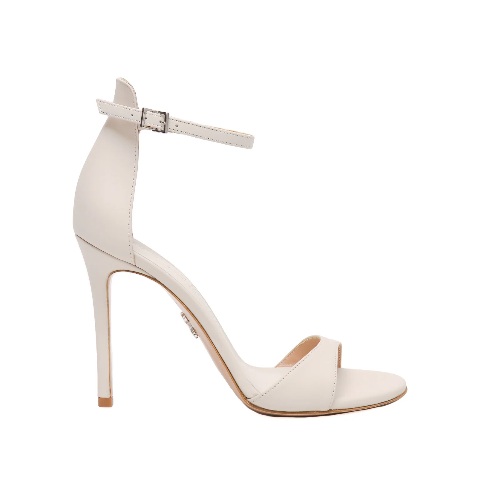Sandalo donna in pelle color latte con cinturino alla caviglia