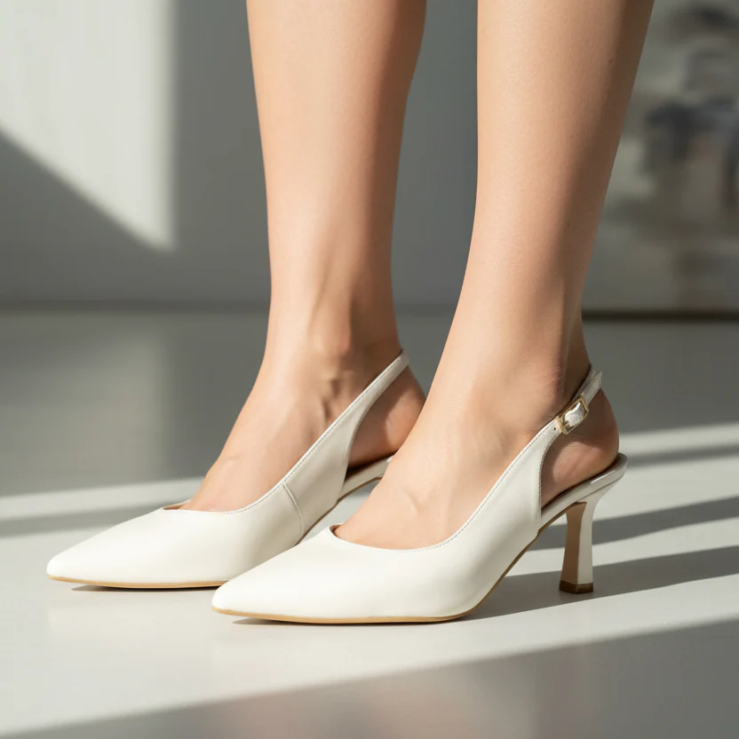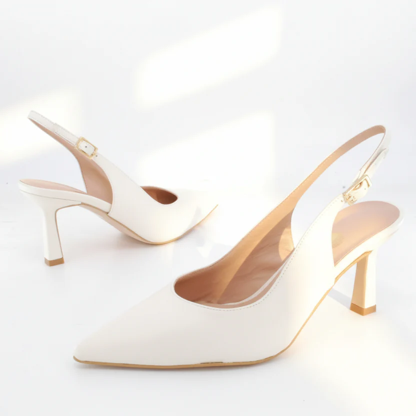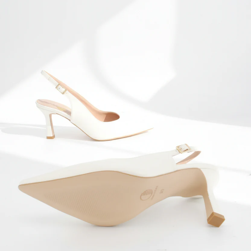 Tomaia in pelle Fodera in pelle Soletta in pelle Cinturino regolabile con fibbia Suola in gomma antiscivolo Tacco rivestito in pelle Altezza tacco 70 mm Sotto tacco in gomma Qualitร Artigianale Italiana