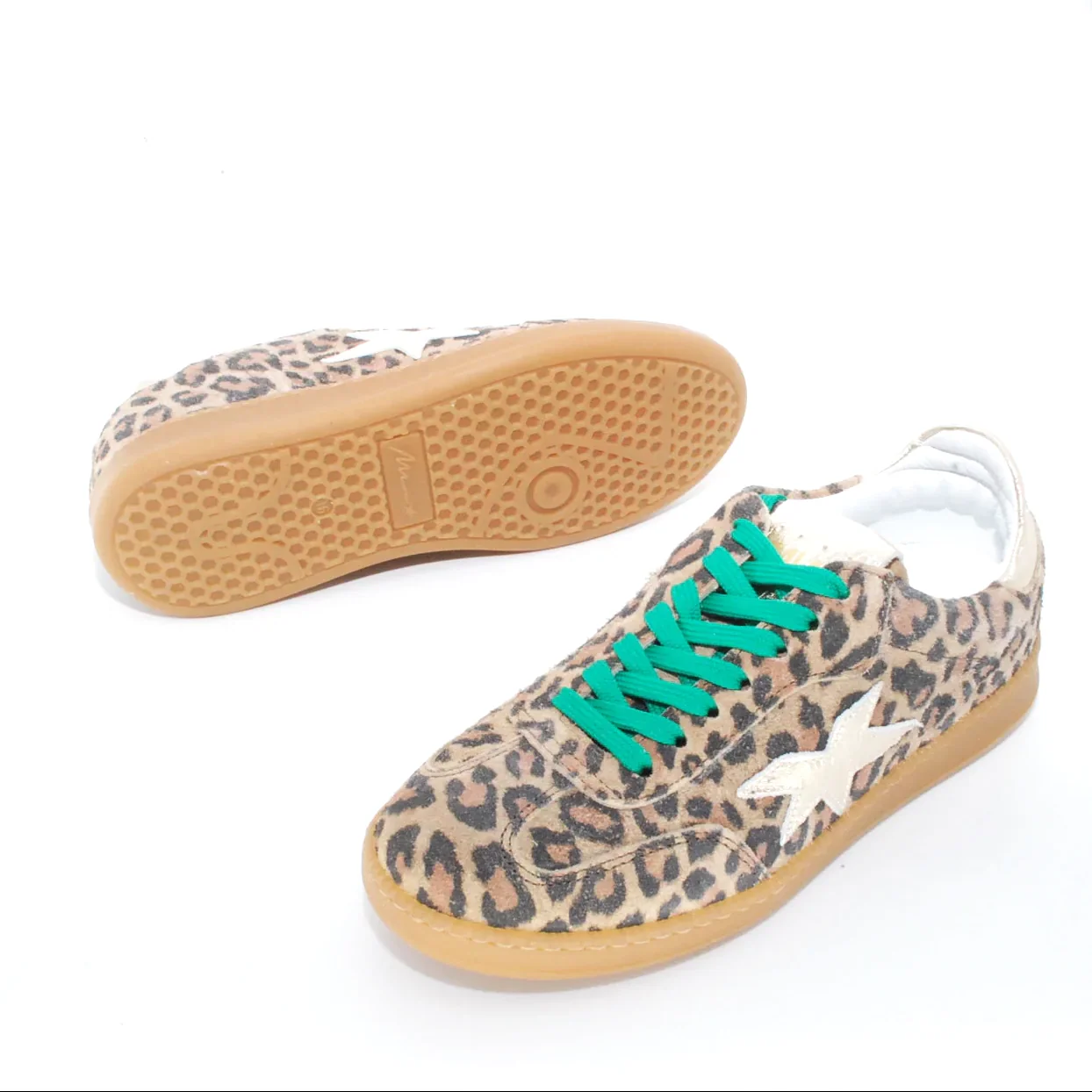 Tomaia in camoscio stampa leopard Fodera in pelle Soletta in pelle Riporto Tallone in pelle Suola in gomma Allacciatura frontale Applicazioni : stella in pelle Altezza suola: 30 mm Soletta estraibile