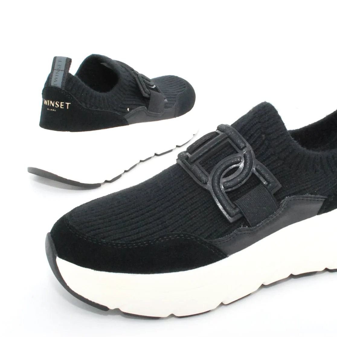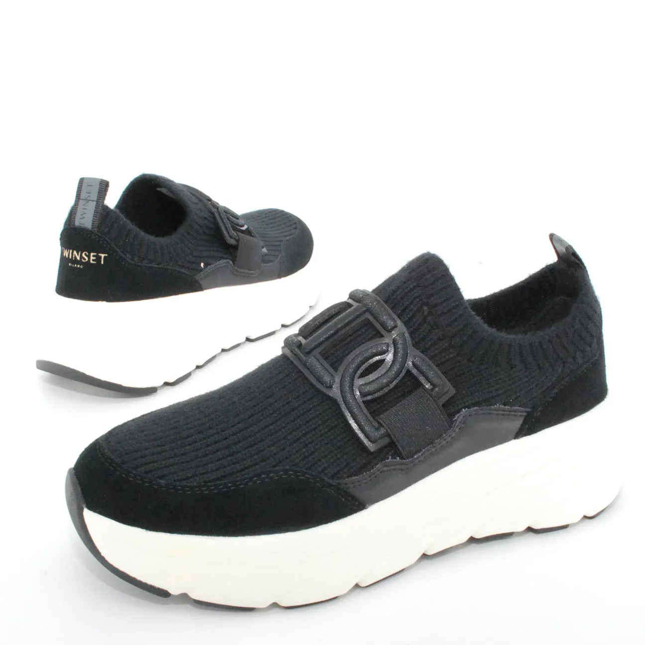 Tomaia in tessuto Fodera in tessuto Soletta in tessuto Soletta estraibile Suola in gomma antiscivolo Altezza suola 50 mm Riporto logo Twinset in pelle