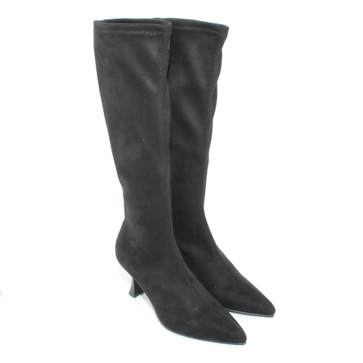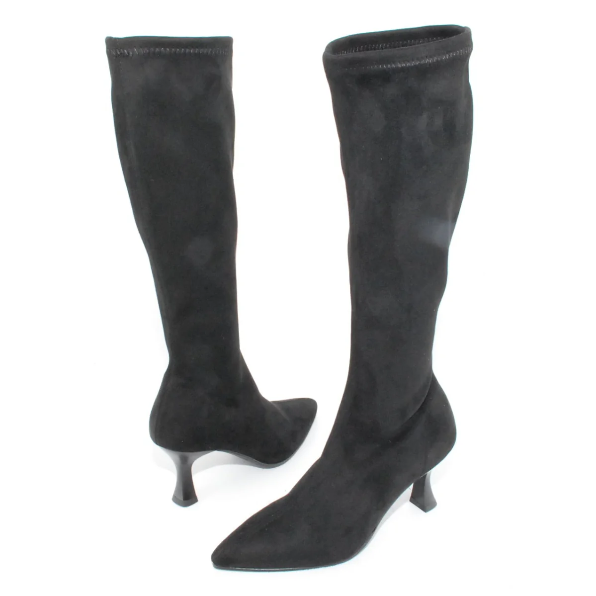 Tomaia in Eco camoscio elasticizzato Fodera in tessuto Soletta in Eco pelle Suola in gomma antiscivolo Tacco in resina Altezza tacco 80 mm Altezza gambale 36 Sotto tacco in gomma