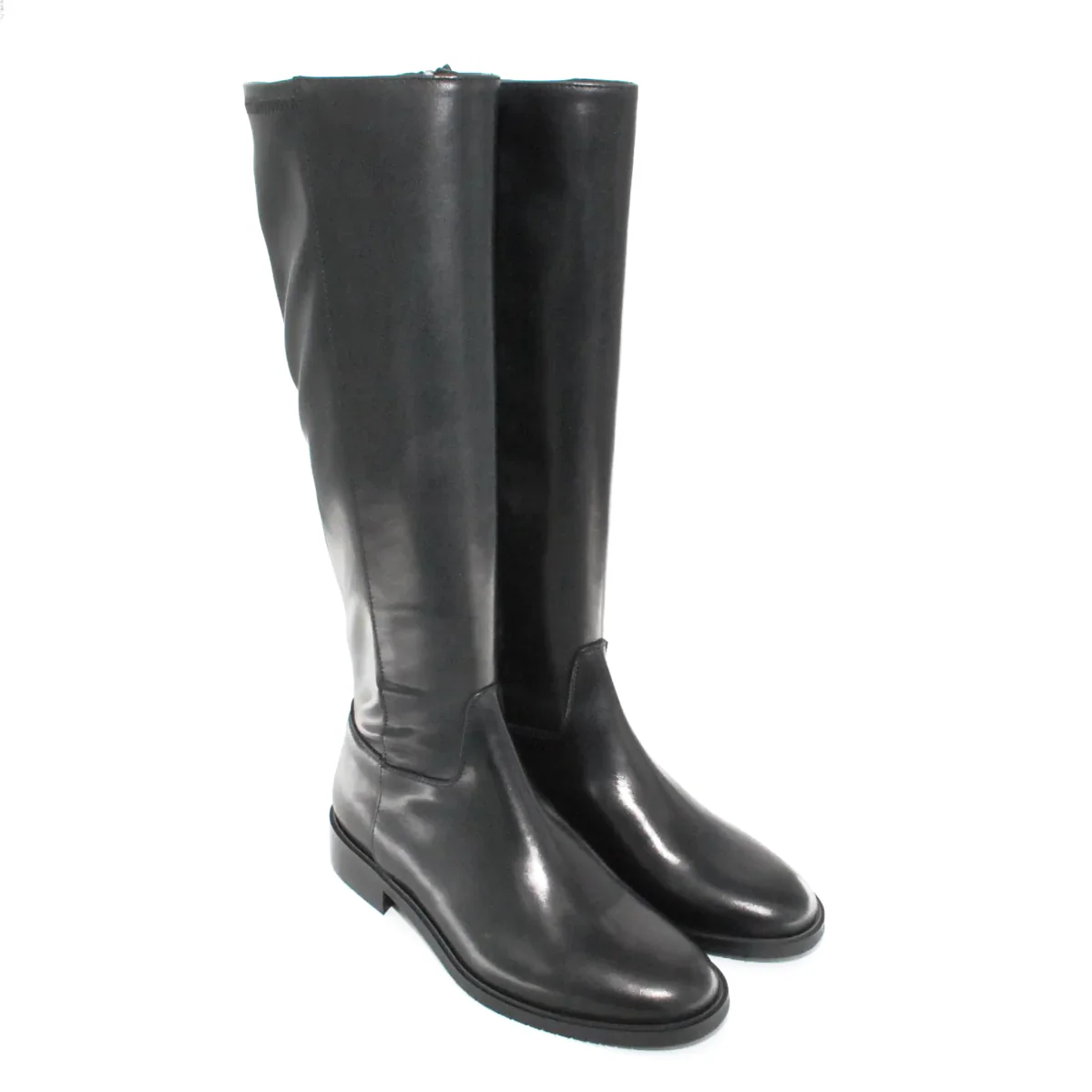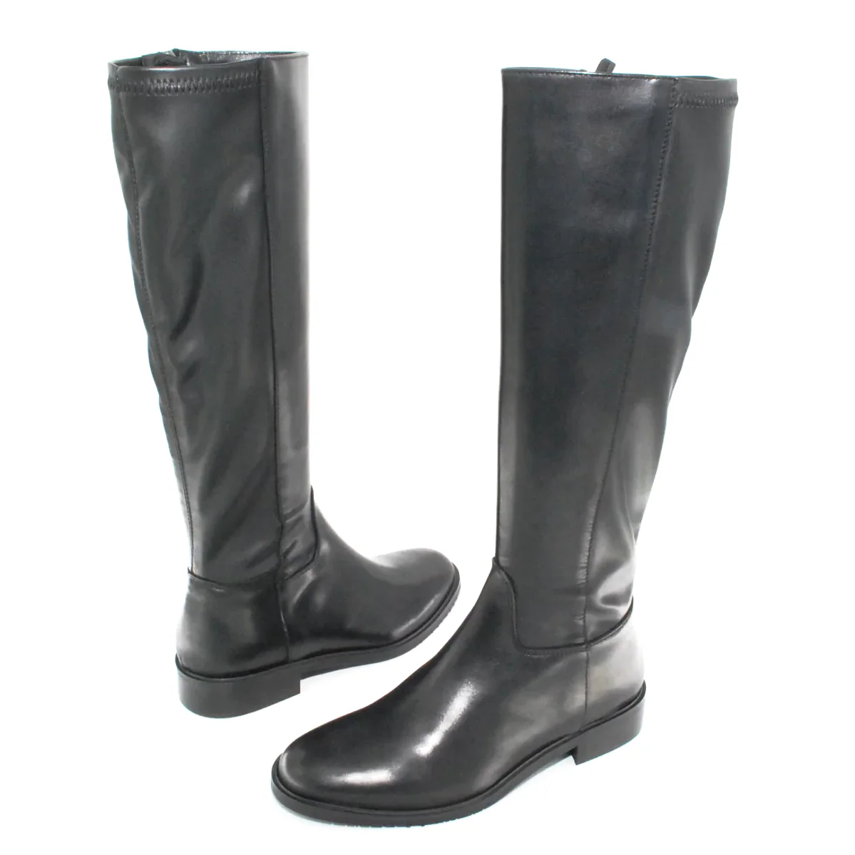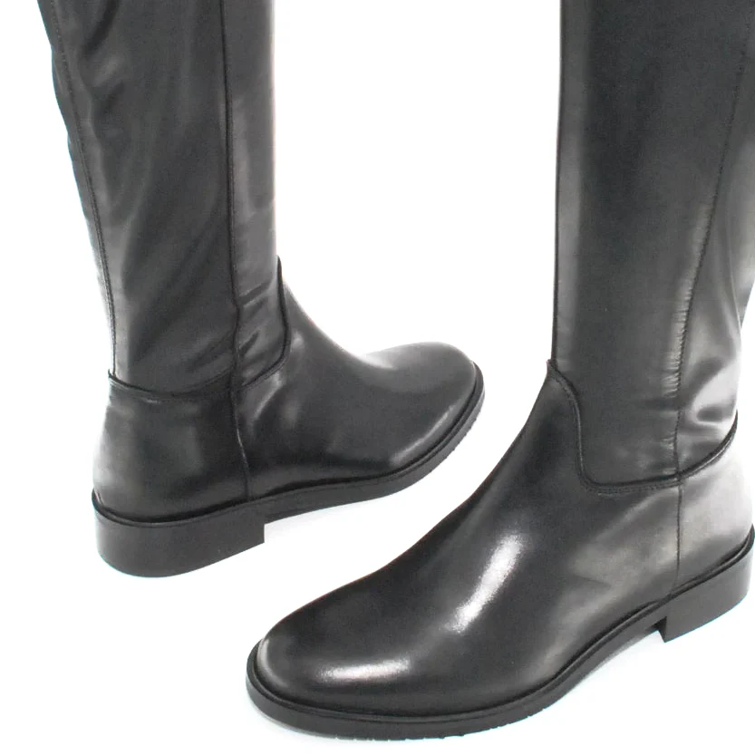 Tomaia in pelle Fodera in pelle Soletta in pelle Suola in gomma antiscivolo Cerniera laterale Tomaia posteriore elasticizzata Altezza tacco 30 mm Altezza gambale 39 cm Qualitร  Artigianale Italiana
