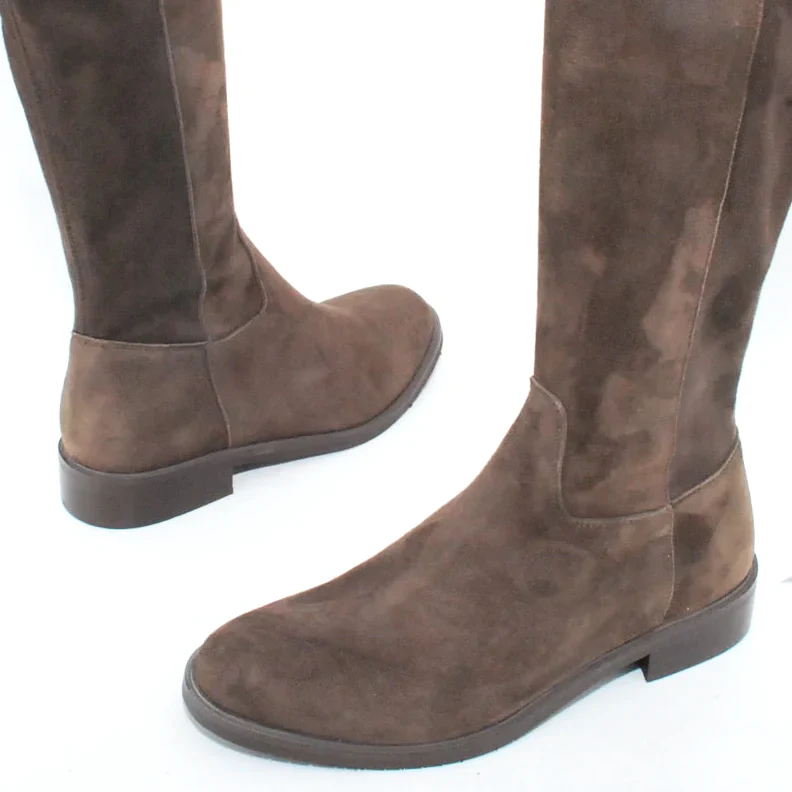 Tomaia in camoscio Fodera in pelle Soletta in pelle Suola in gomma antiscivolo Cerniera laterale Tomaia posteriore elasticizzata Altezza tacco 30 mm Altezza gambale 39 cm Qualitร Artigianale Italiana
