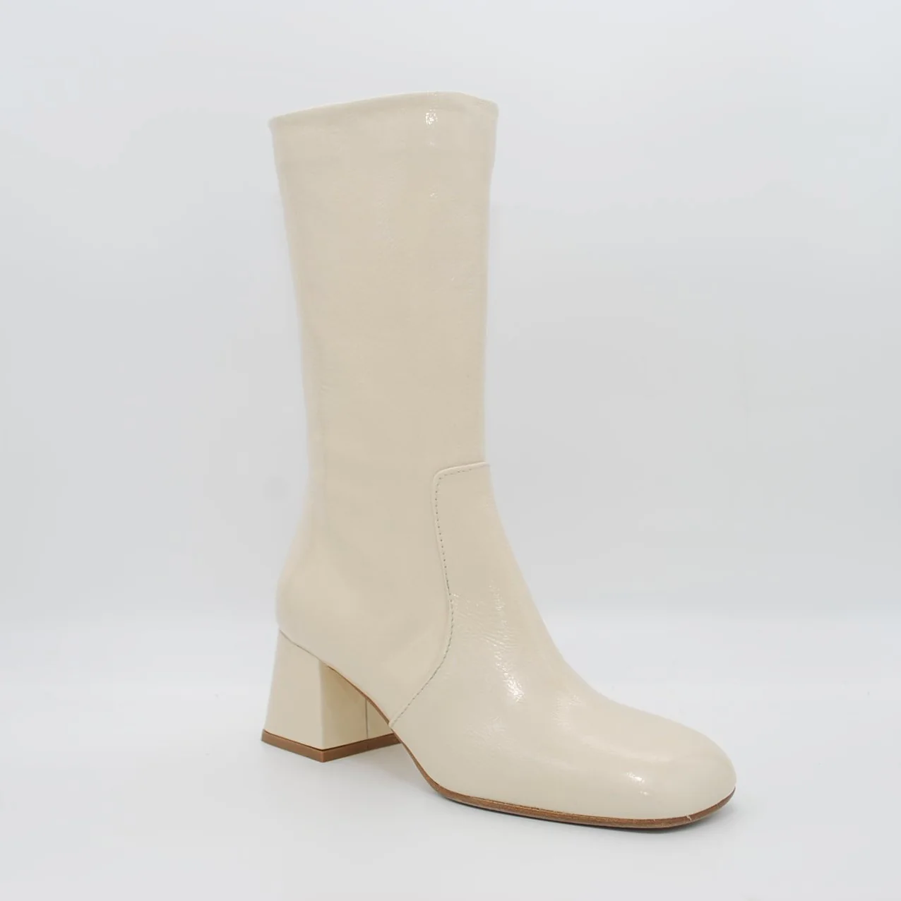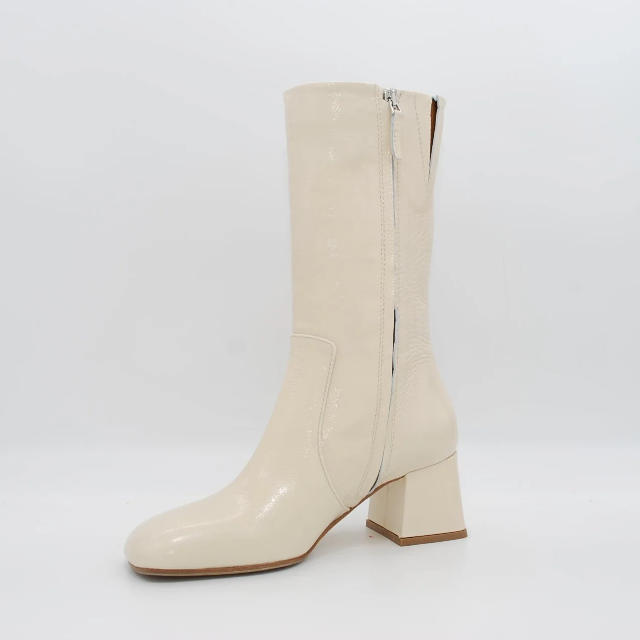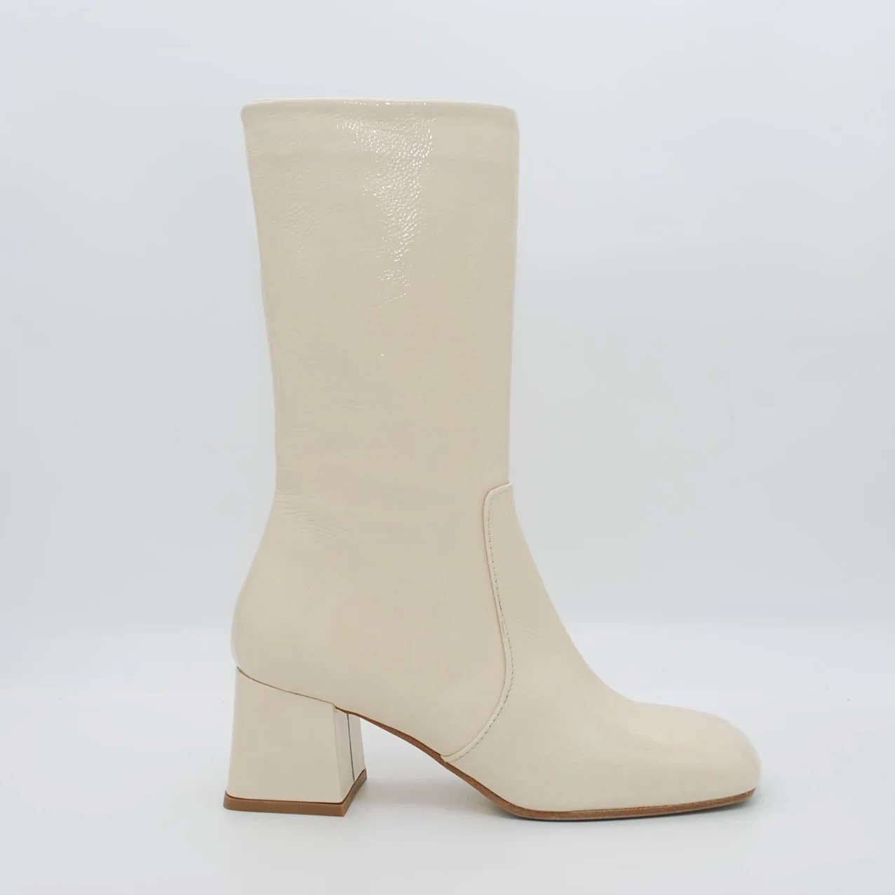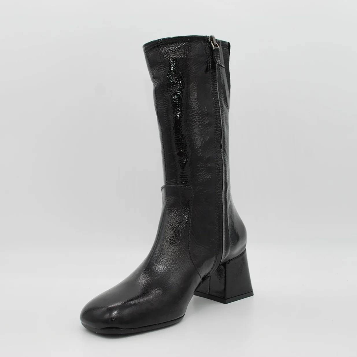 Stivale in pelle verniciata 3/4Fodera in pelleSuoletta imbottita in pellefondo in gomma antiscivolotacco rivestito in pelle 60 mmcerniera laterale Realizzato da artigiani italiani per Nika
