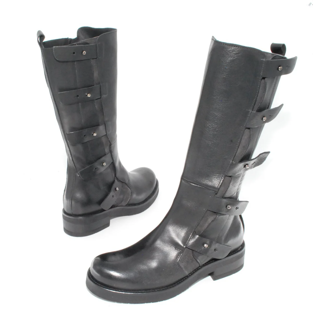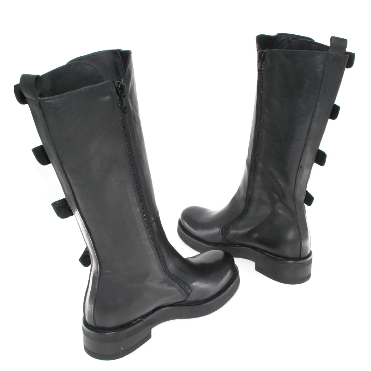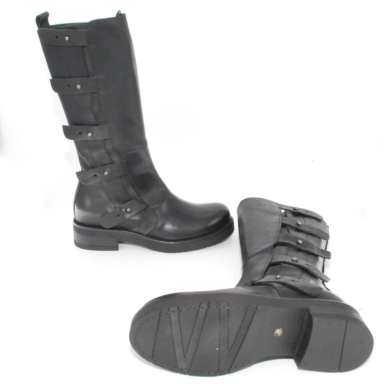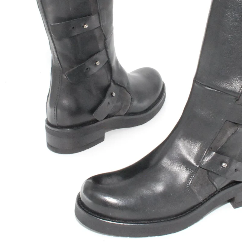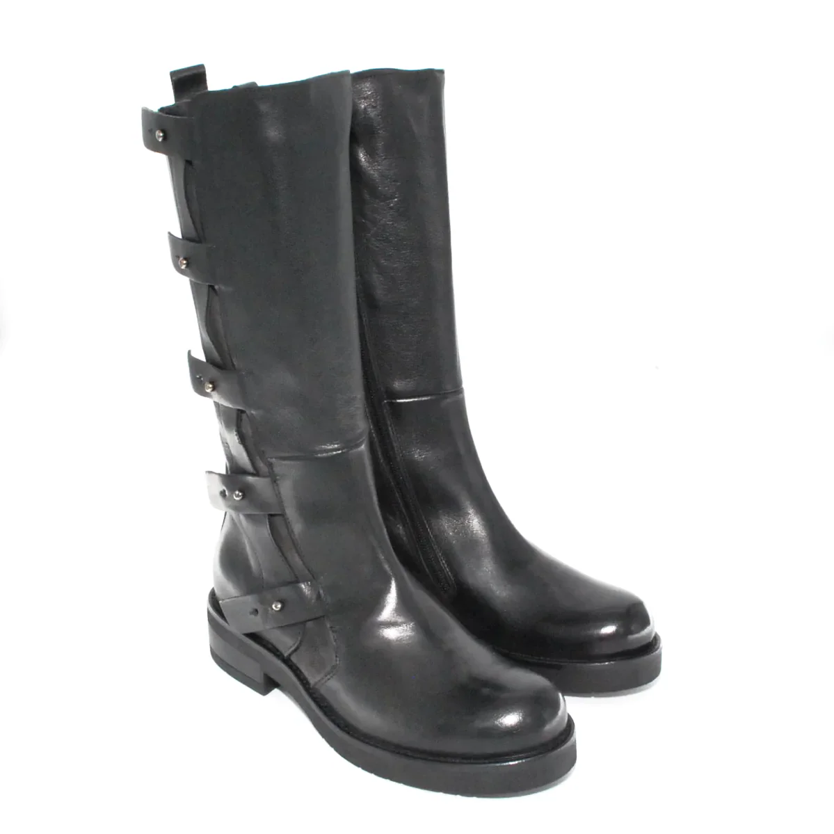 Tomaia in pelle Fodera in pelle Soletta in pelle Suola in gomma antiscivolo Cerniera laterale Stringhe in pelle Tacco in gomma Altezza tacco 40 mm Altezza gambale 28 cm Sotto tacco in gomma Qualitร Artigianale Italiana