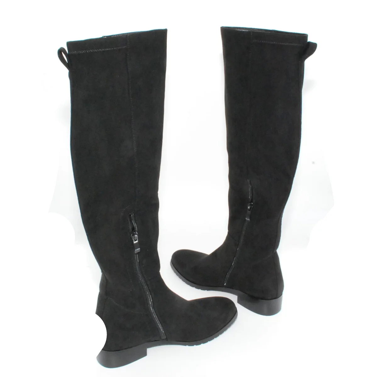 Tomaia in Eco camoscio Fodera in tessuto Soletta in pelle Cerniera laterale Suola in gomma antiscivolo Altezza tacco 40 mm Altezza gambale 42 cm