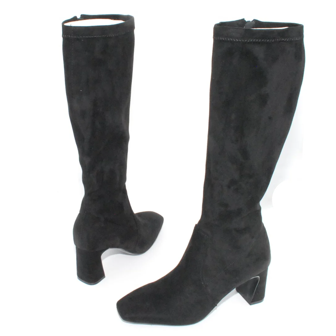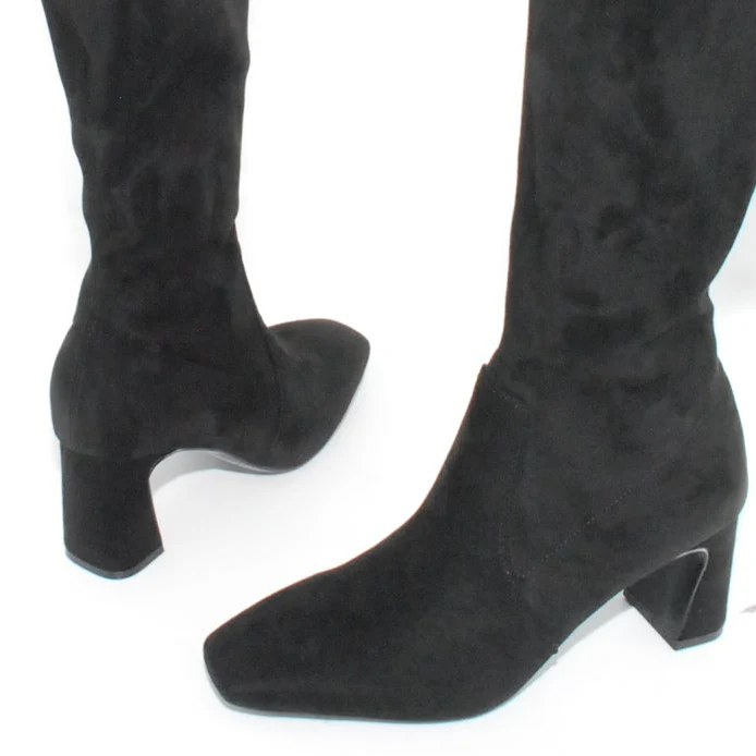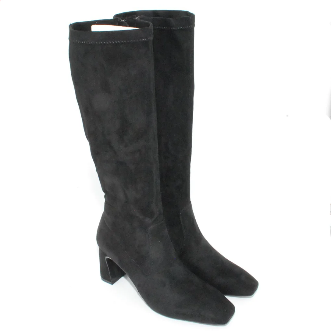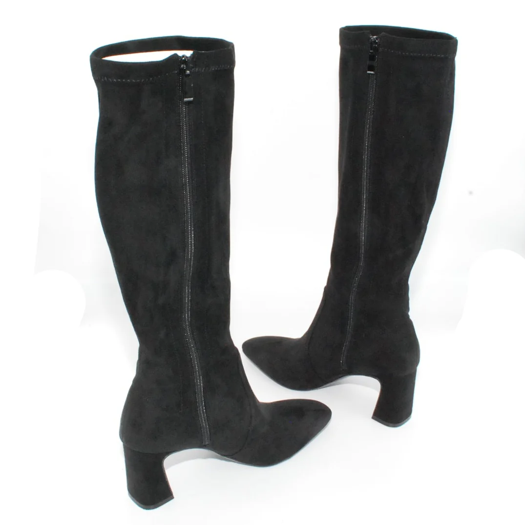 Tomaia in Eco camoscio Fodera in tessuto Soletta in Eco pelle Cerniera laterale Suola in gomma antiscivolo Tacco rivestito in Eco camoscio Altezza tacco 70 mm Altezza gambale 35 cm