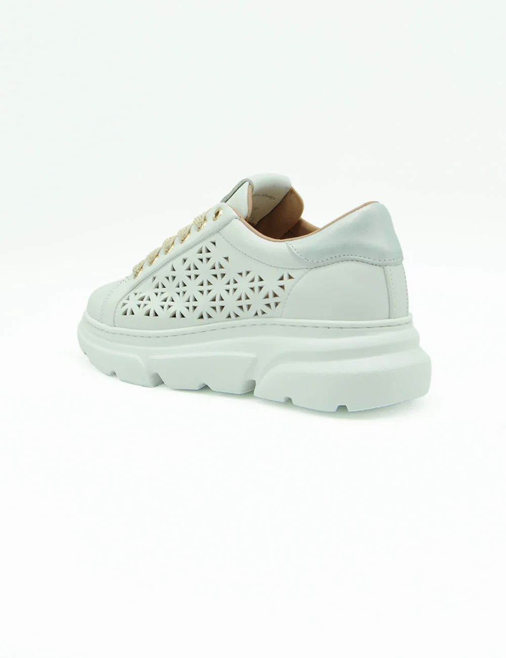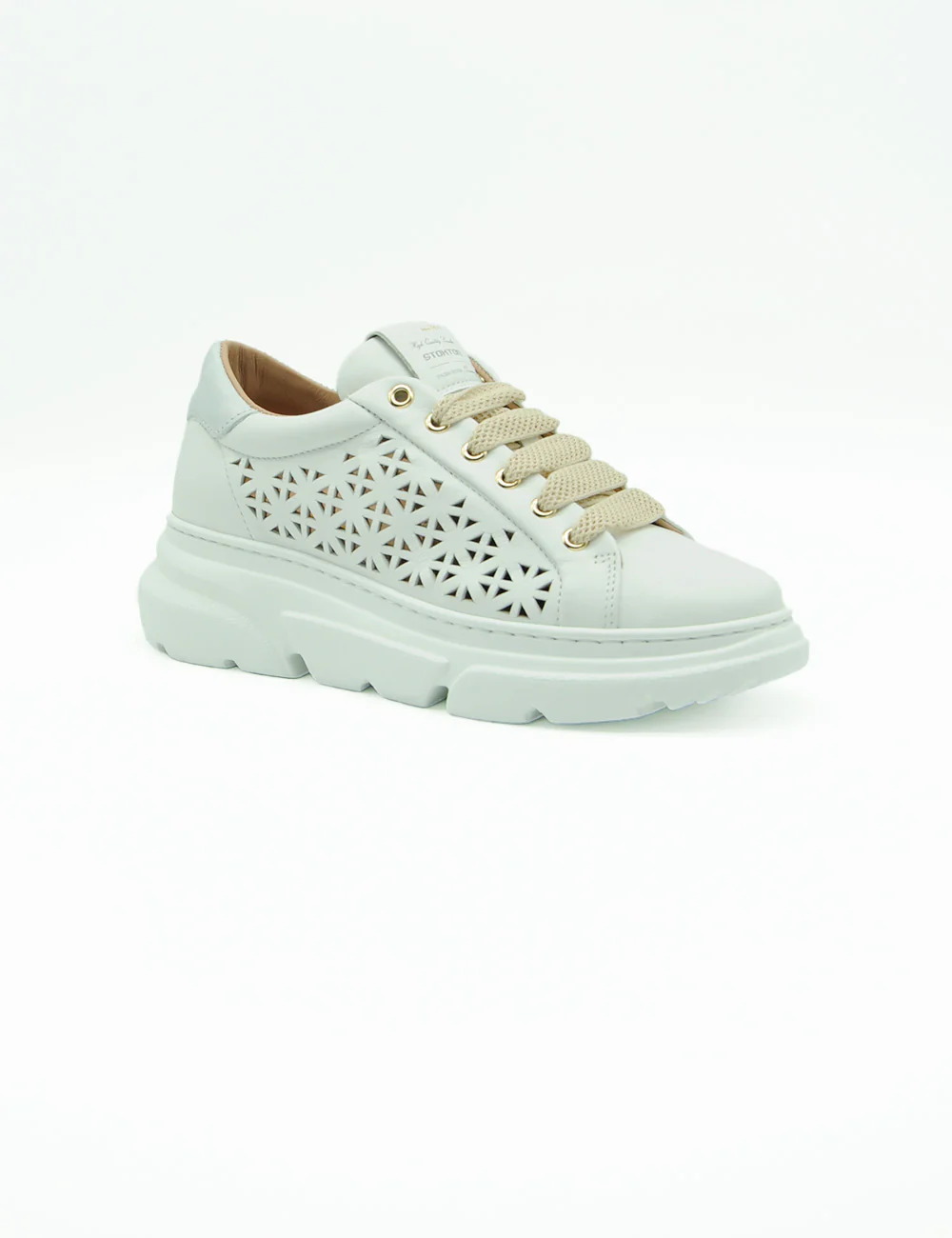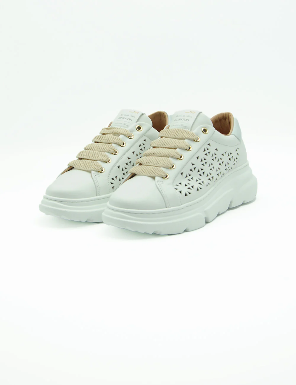 La sneaker Stokton Calf Bianca sfida le convenzioni: pelle bianca audacemente traforata con geometrie decise, suola oversize che eleva lo stile oltre il quotidiano. Un’affermazione di personalitร che trasforma il casual in dichiarazione di lusso consapevole. Include lacci bianchi di ricambio per completare il look con sicurezza.