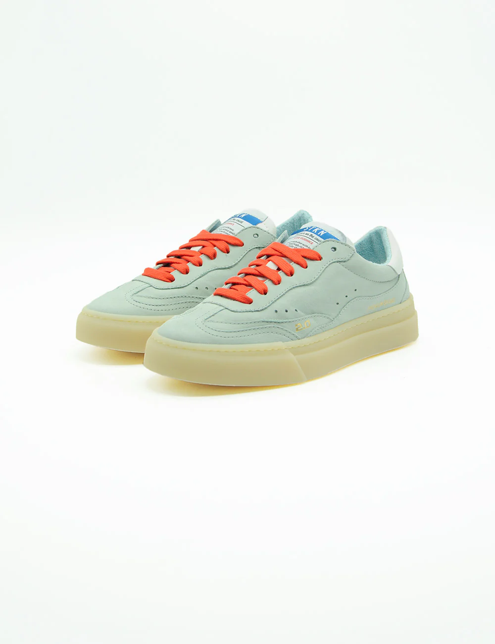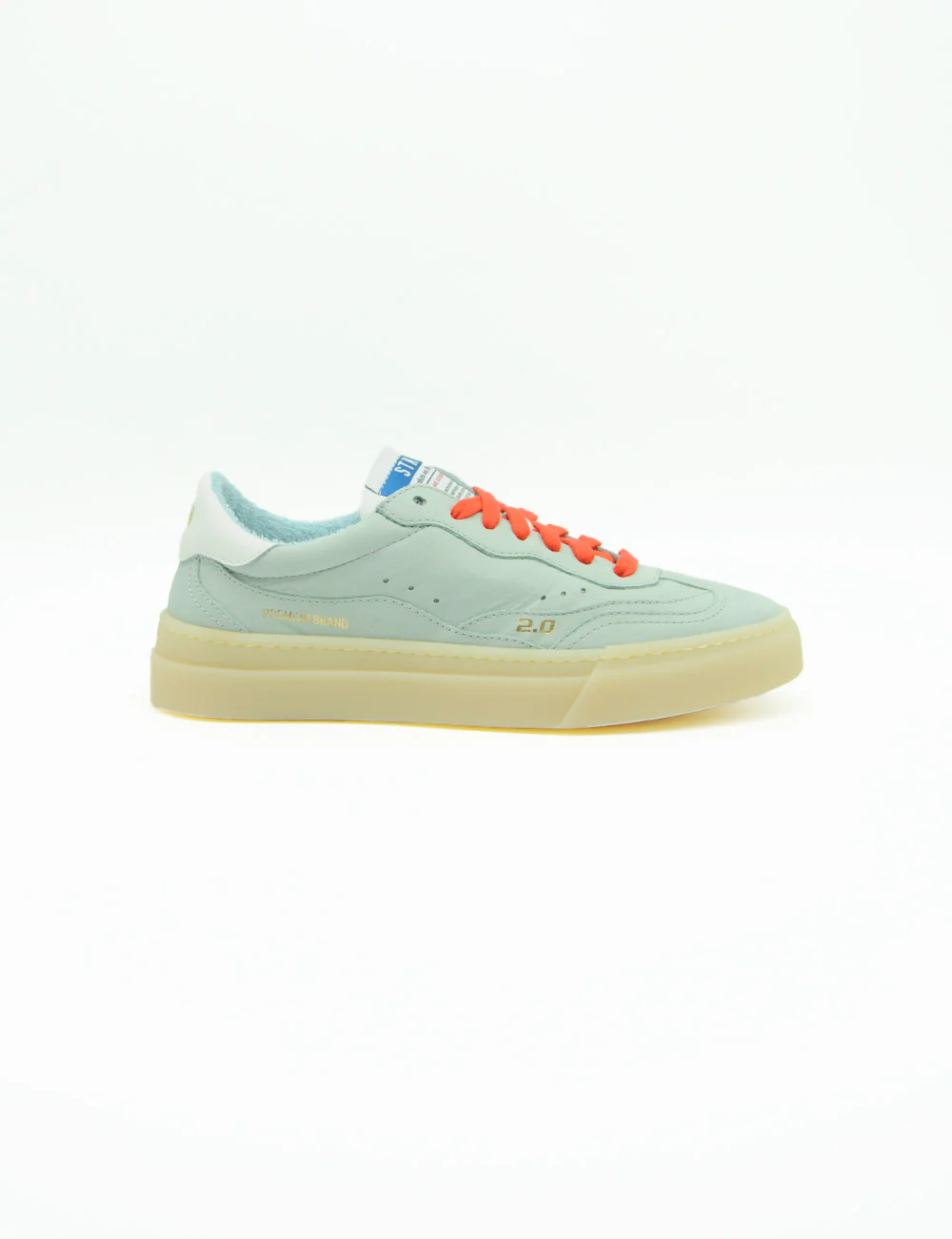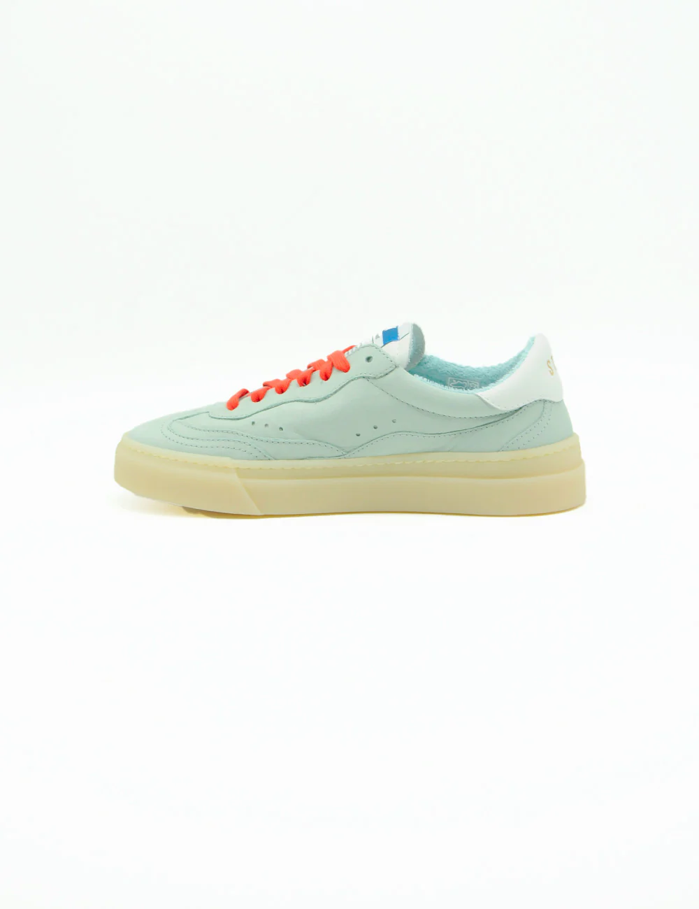 Stokton Sneakers Venus , sneakers in pelle di alta qualitร con lacci a contrasto color corallo. Toppone logato e fodera in tessuto.