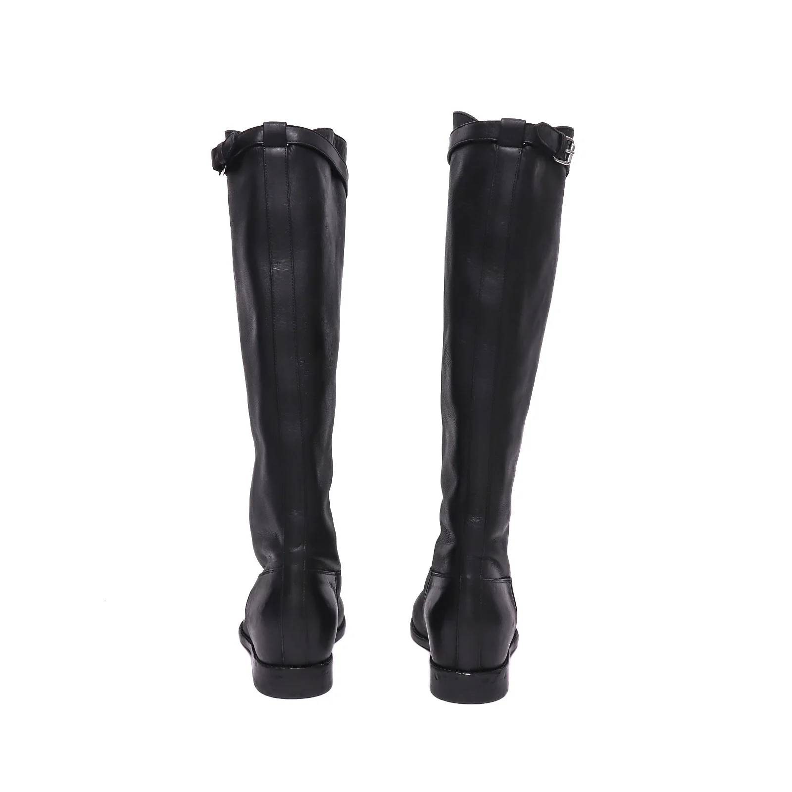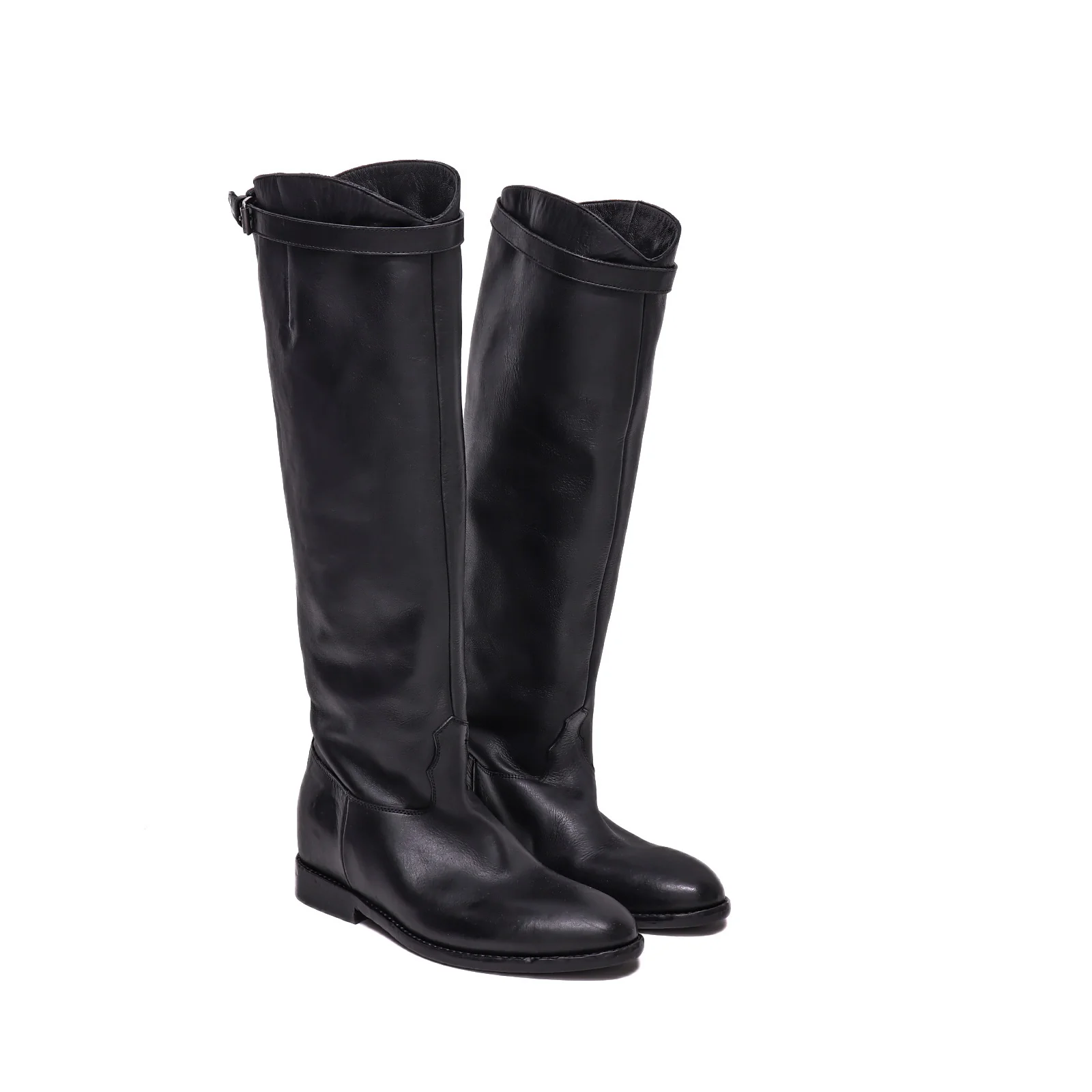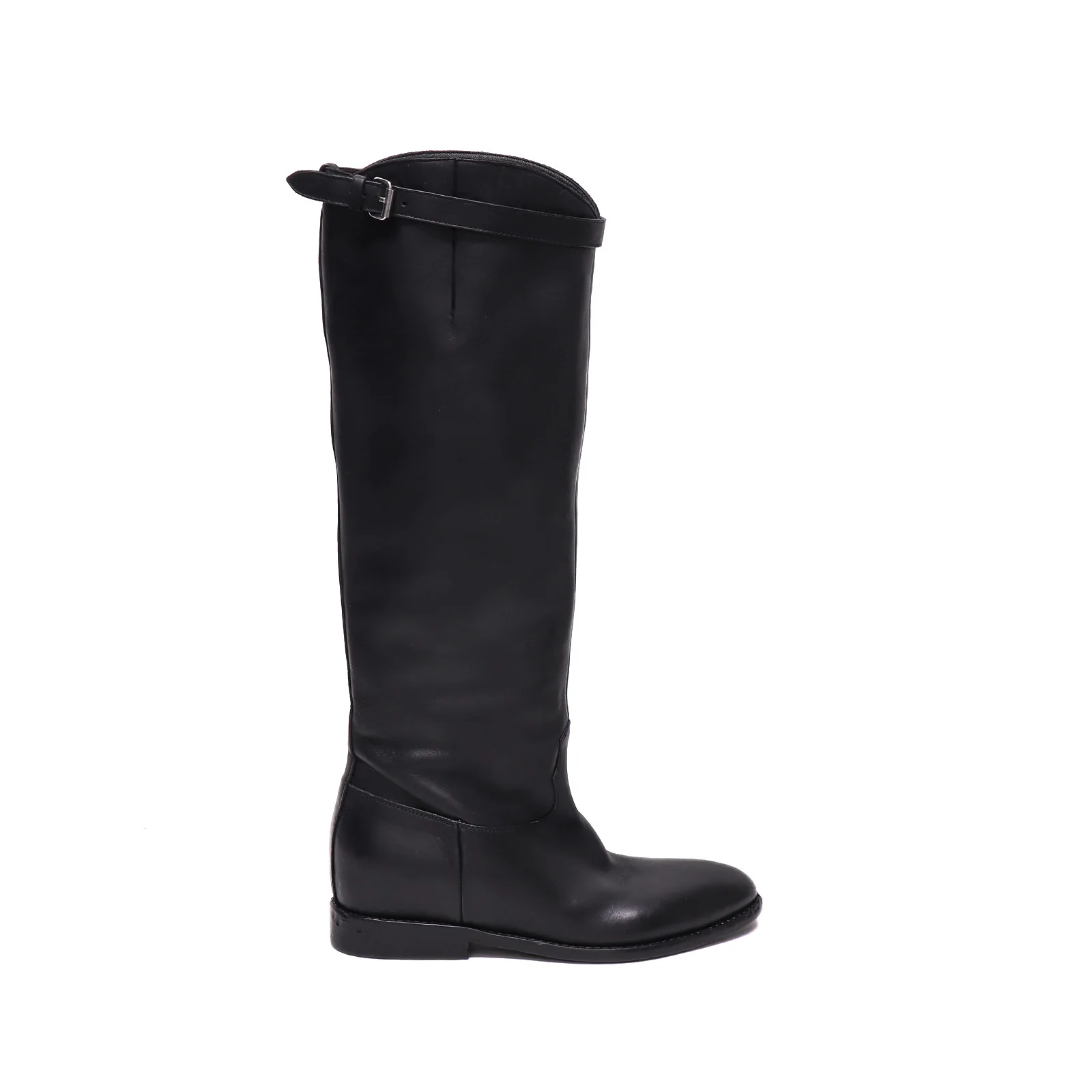 Stivale in pelle nera con cinturinoFodera in pelleSuola in cuoio e gommaTacco 3 cm + Zeppa interna 2 cmCalzata regolareProdotto in ItaliaID Prodotto : A5685 SAX NERO WASHSKU : 5685-N