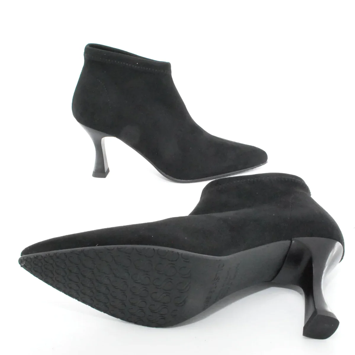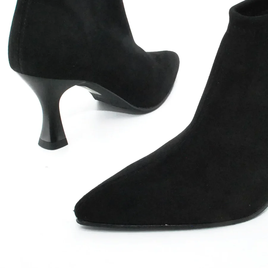 Tomaia in Eco camoscio Fodera in tessuto Soletta in tessuto Tacco in resina Suola in gomma antiscivolo Altezza tacco 80 mm