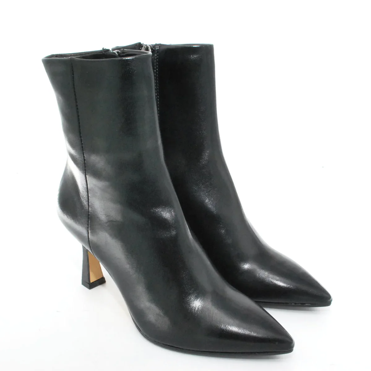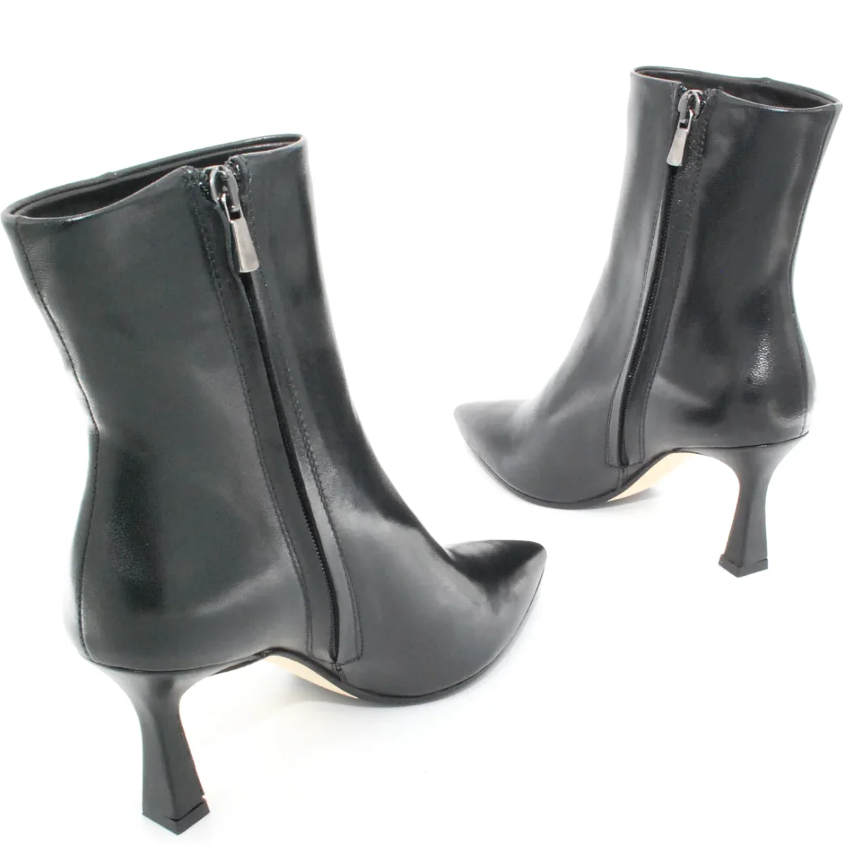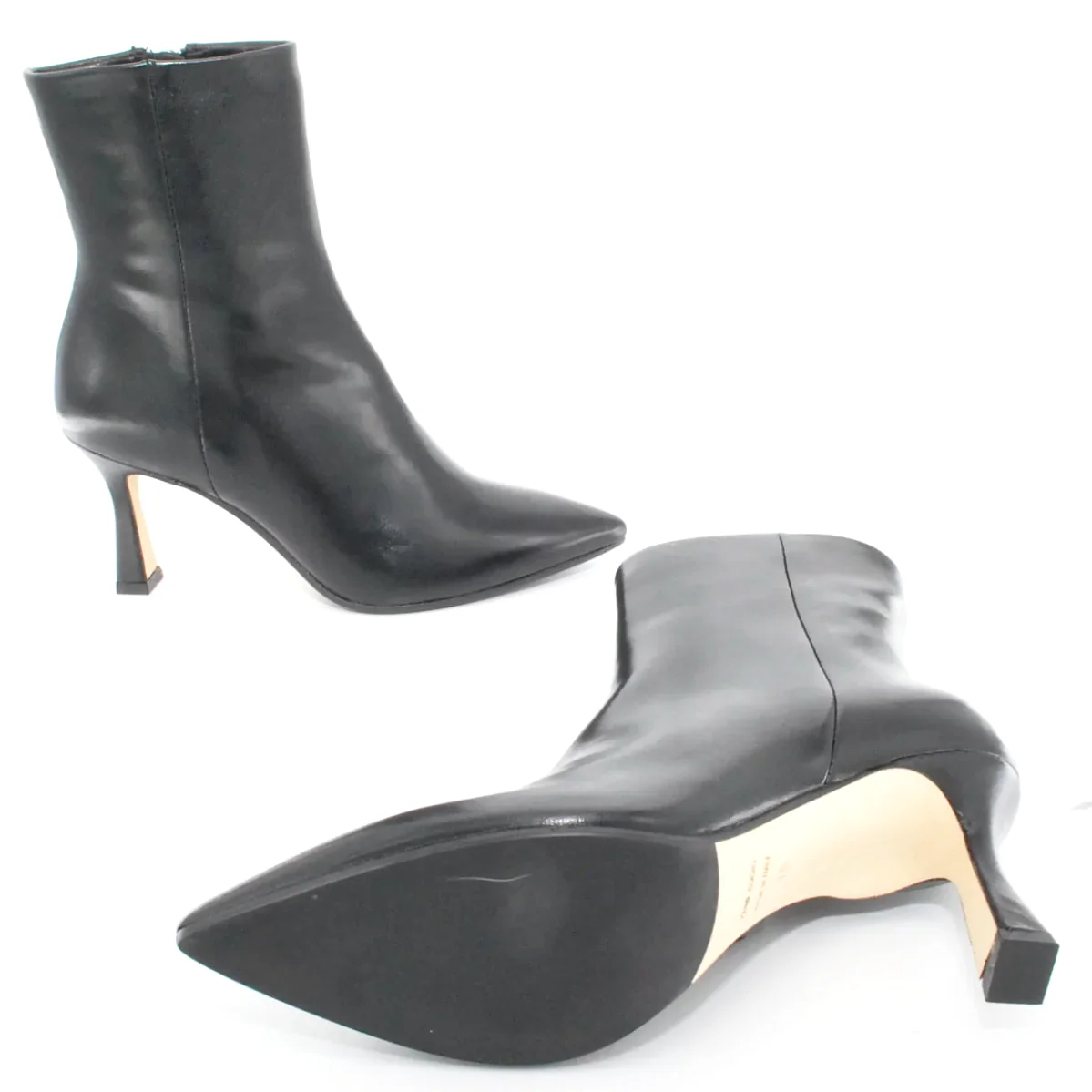 Tomaia in pelle Fodera in pelle Soletta in pelle Suola in cuoio e gomma antiscivolo Tacco rivestito in pelle Cerniera laterale Altezza tacco 75 mm Altezza gambale 14 cm Qualitร Artigianale Italiana