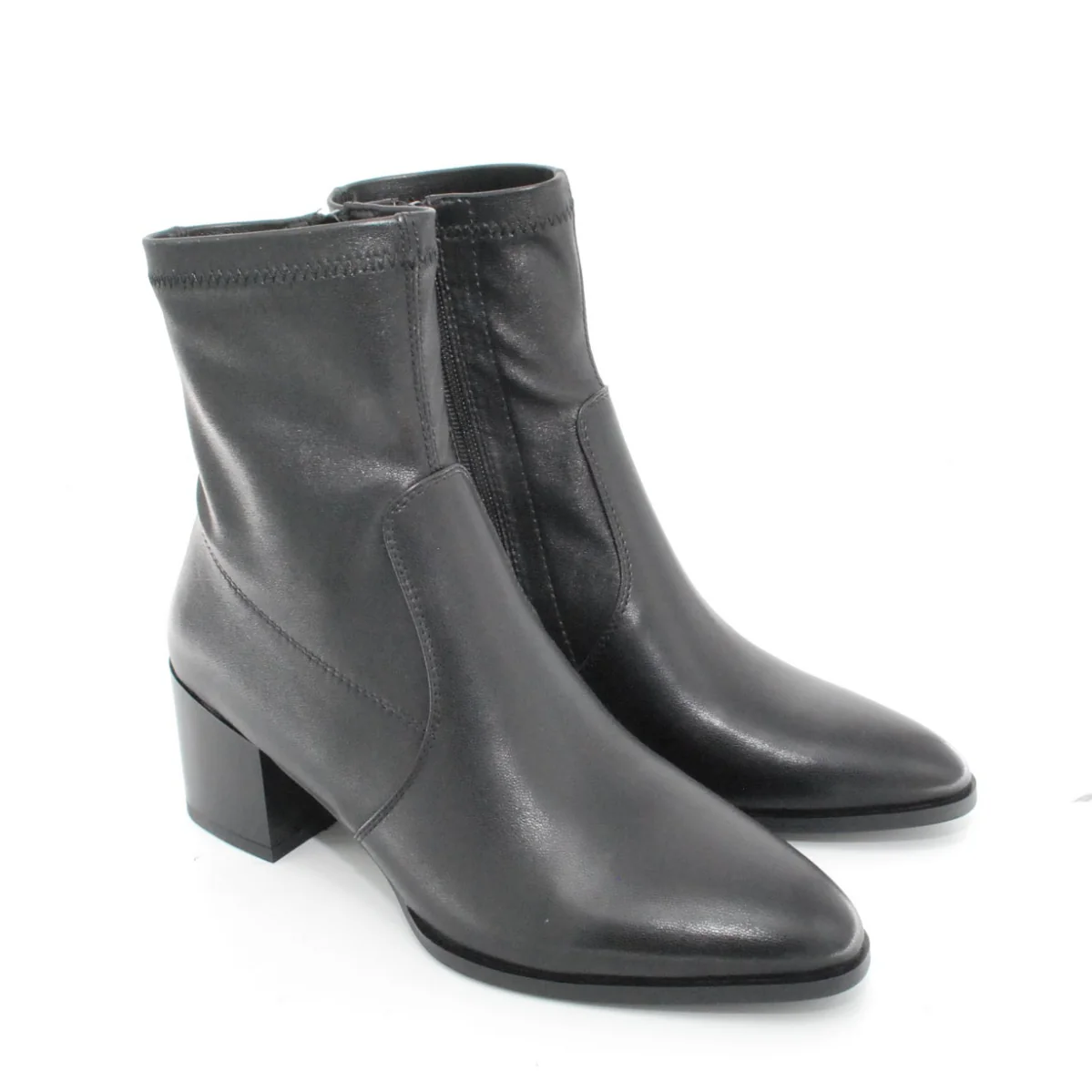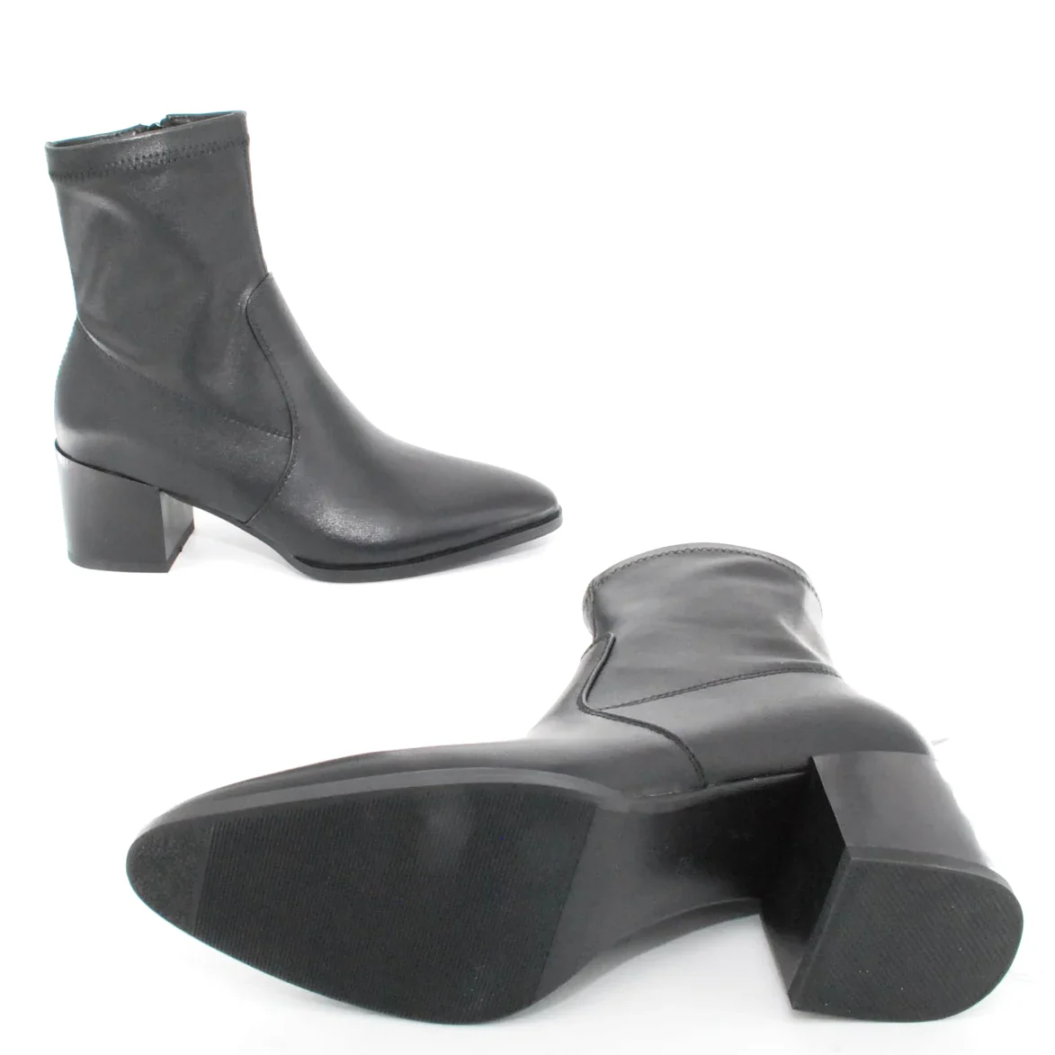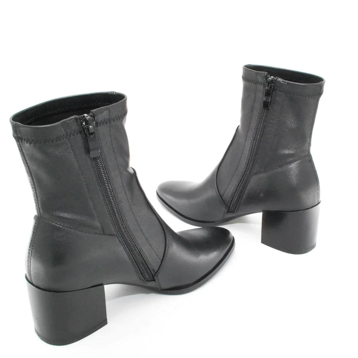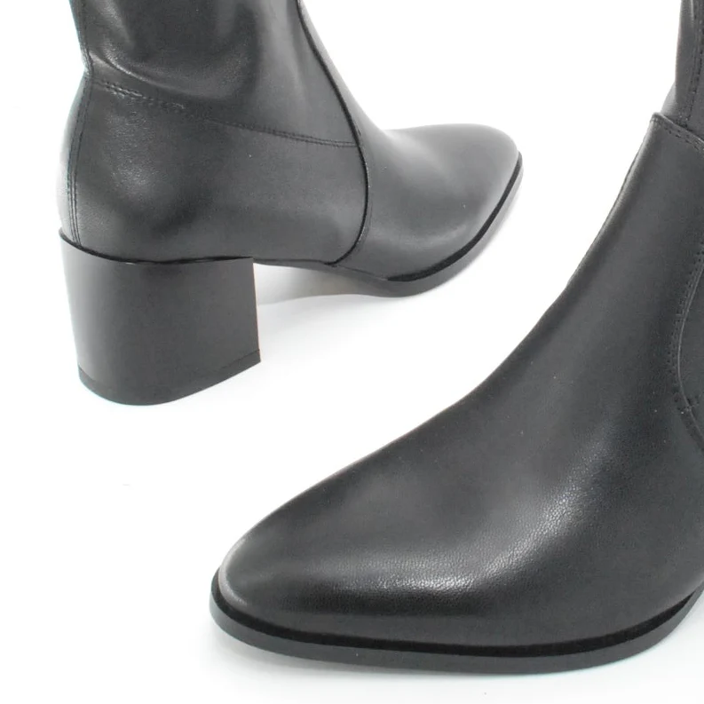 Tomaia in Eco pelle Fodera in tessuto Soletta in tessuto Tacco in resina Cerniera laterale Suola in gomma antiscivolo Altezza tacco 60 mm Altezza gambale 14 cm