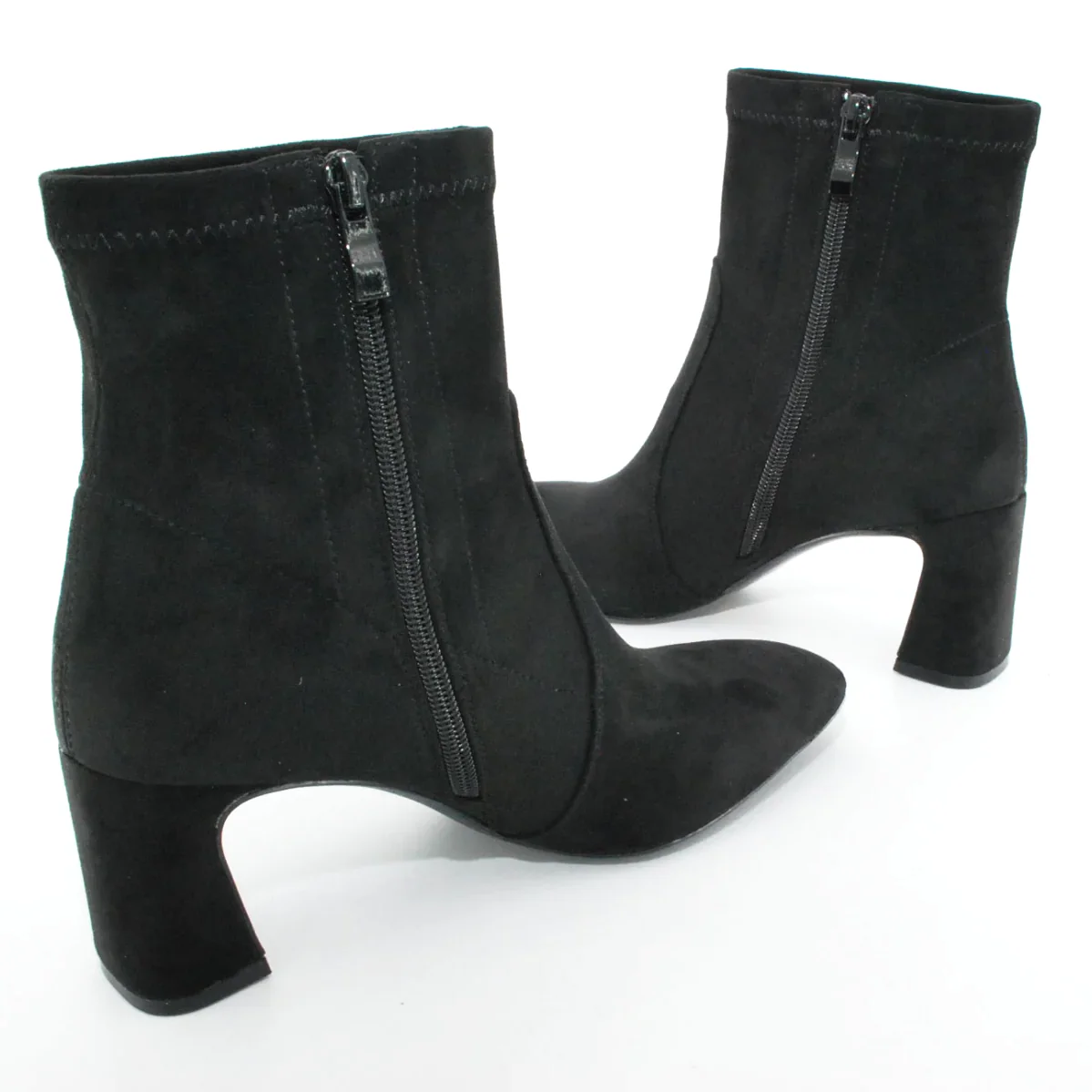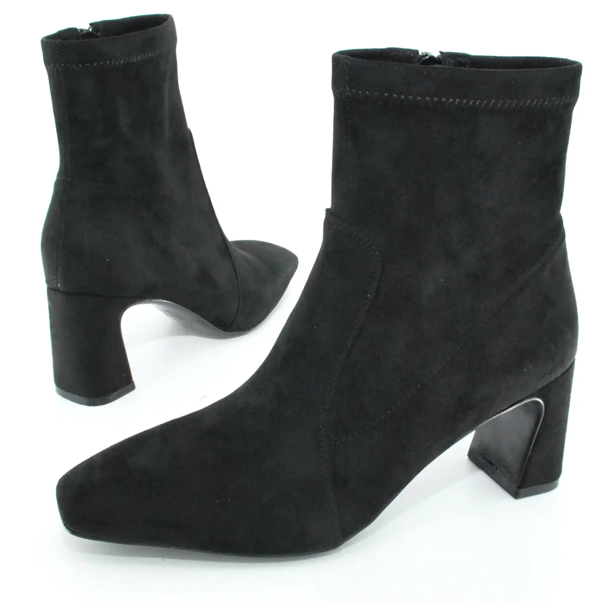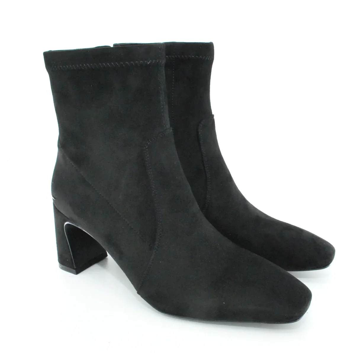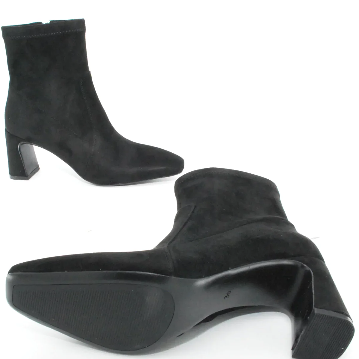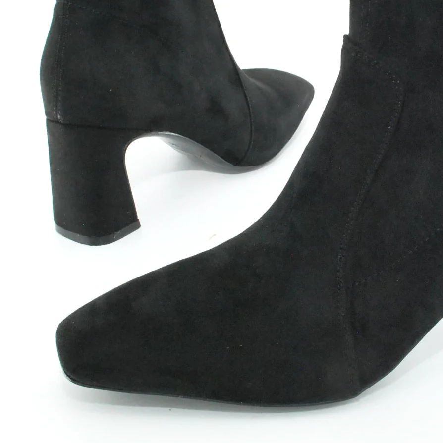 Tomaia in Eco camoscio Fodera in tessuto Soletta in tessuto Suola in gomma Tacco rivestito in Eco camoscio Cerniera laterale Altezza tacco 70 mm Altezza gambale 14 cm Sotto tacco in gomma