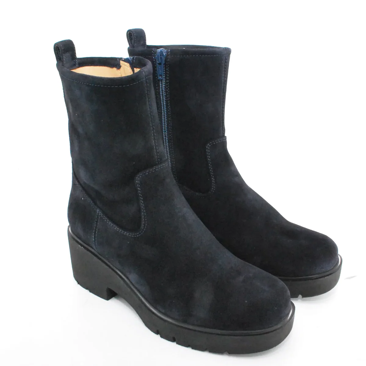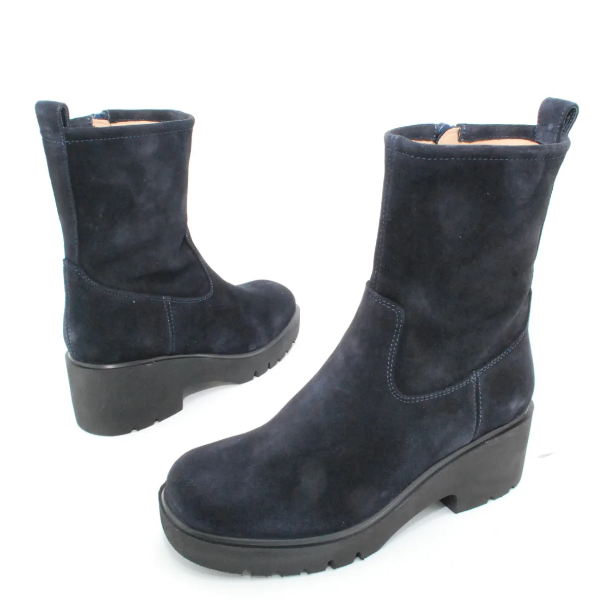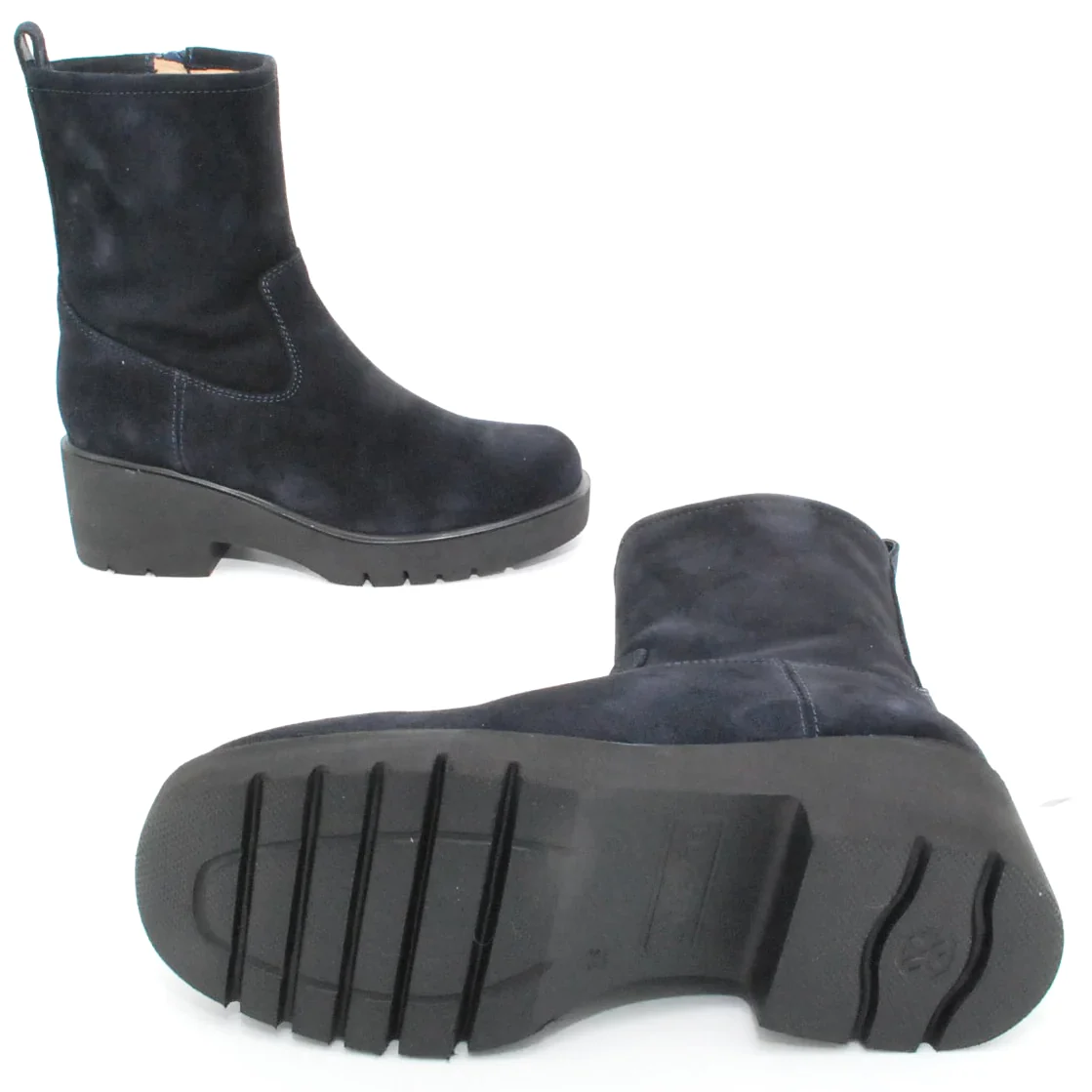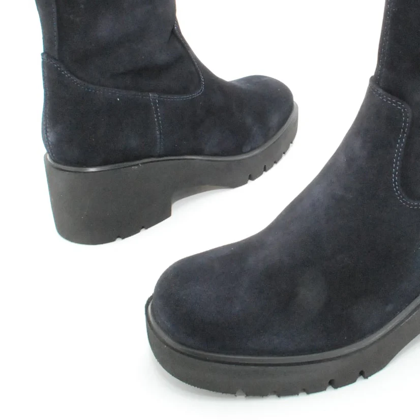 Tomaia in camoscio Fodera in pelle Soletta in pelle Suola in gomma antiscivolo Cerniera laterale Altezza tacco 60 mm Altezza gambale 17 cm Sotto tacco in gomma