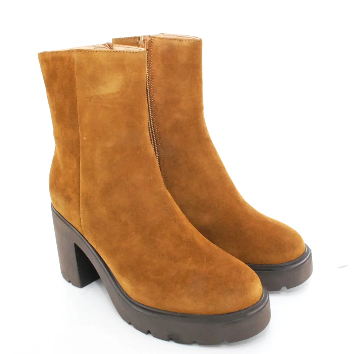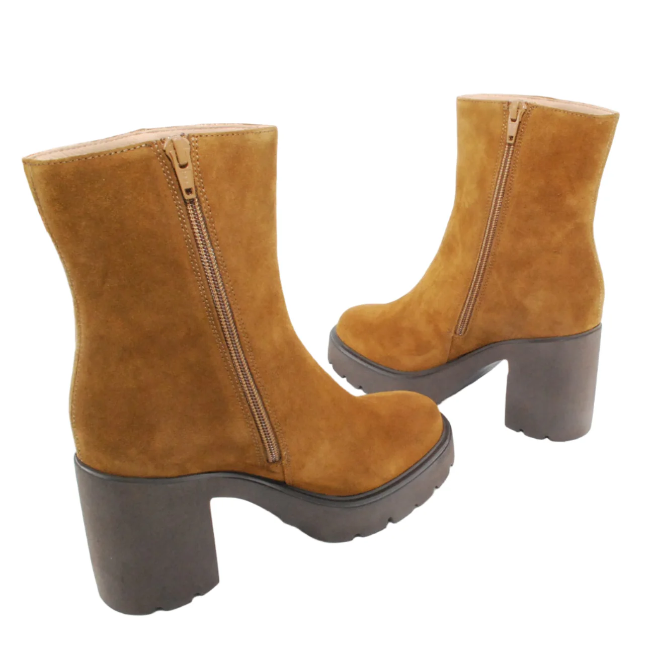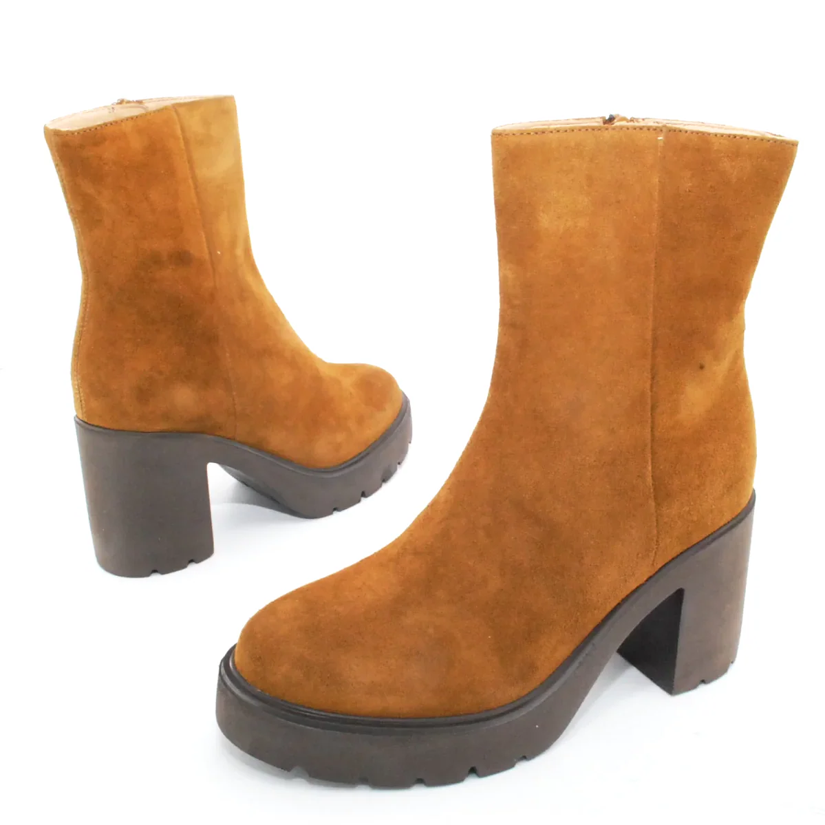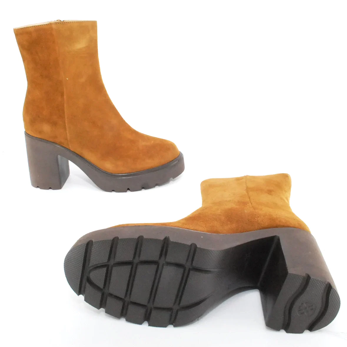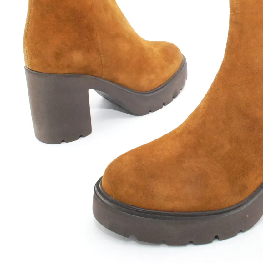 Tomaia in camoscio Fodera in pelle Soletta in pelle Suola in gomma antiscivolo Cerniera laterale Altezza tacco 90 mm Altezza gambale 17 cm Sotto tacco in gomma