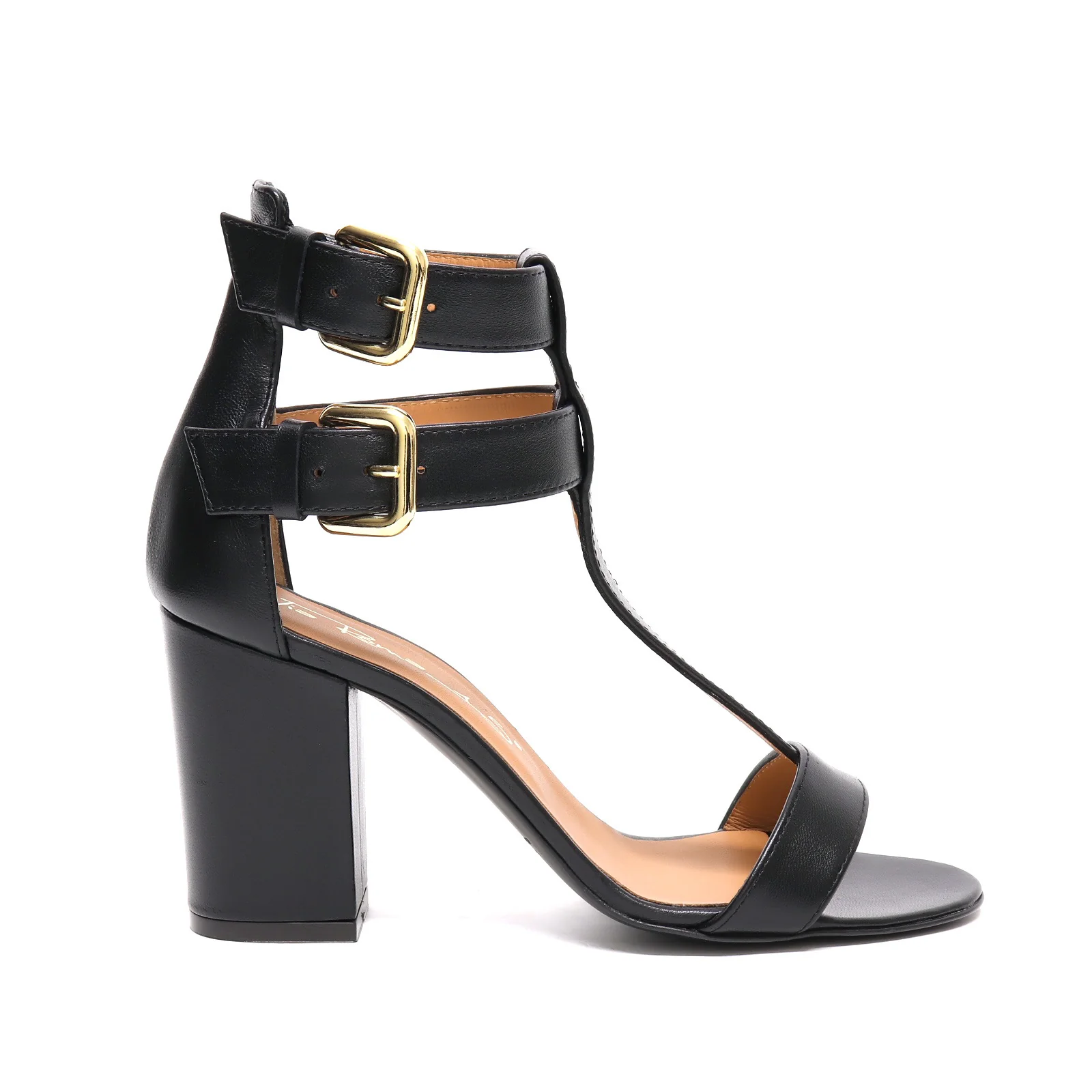 Sandalo in nappa nero con cinturino alla caviglia regolabile con fibbietta.