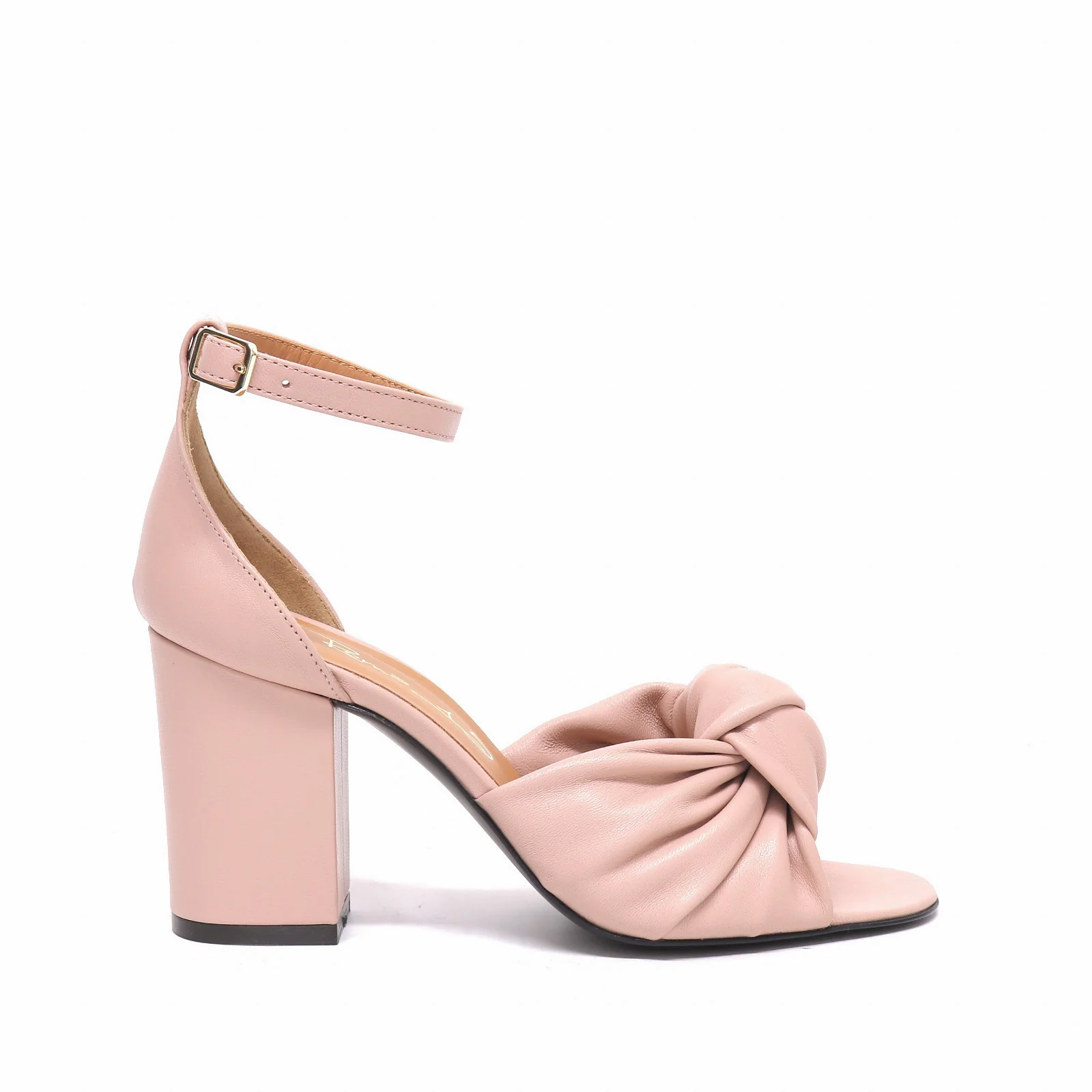 Sandalo in pelle rosa nude con fascia a nodo piรน cinturino in caviglia