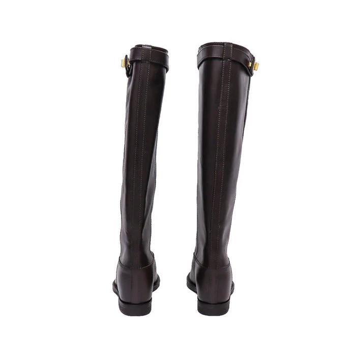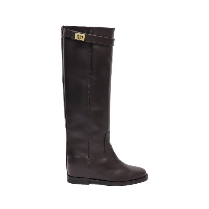 Stivale donna in pelle testa di moro con cinturino in alto sul polpaccio (lucchetto dorato)