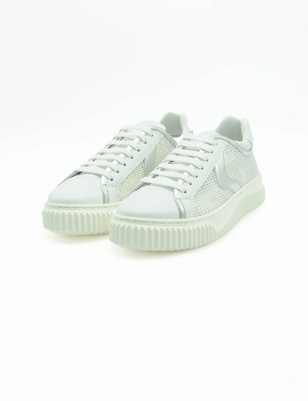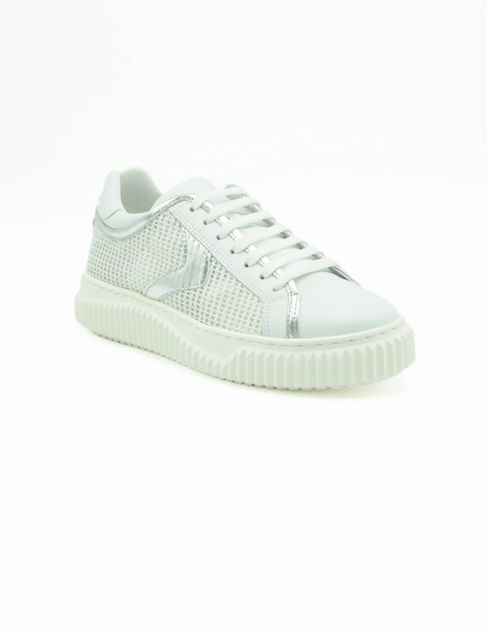 Scopri la Voile Blanche Herika White Silver, dove eleganza e praticitร si incontrano. Questa sneaker combina pelle pregiata e rete tecnica traspirante per un comfort superiore che ti accompagna tutto il giorno. I dettagli in pelle laminata argento conferiscono un tocco sofisticato, mentre il rivestimento interno in cotone mantiene i tuoi piedi freschi e asciutti. La suola in gomma leggera con profilo esclusivo garantisce libertร di movimento senza compromessi stilistici. Perfetta per chi non vuole rinunciare a design contemporaneo e comoditร autentica.
