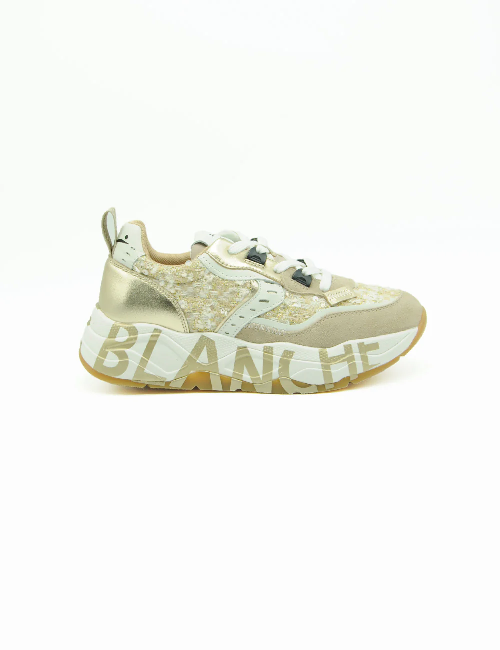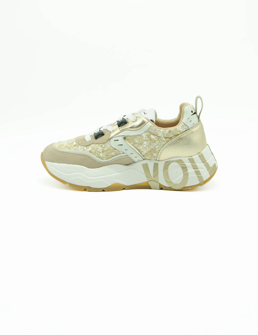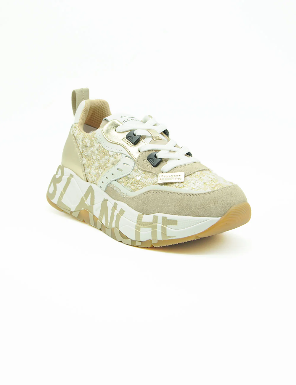 Scopri il fascino irresistibile delle Voile Blanche Sneakers Club105, dove sofisticazione e audacia si incontrano. Queste chunky sneakers catturano l’attenzione con un upper multistrato che combina suede sabbia vellutato, dettagli in tessuto tecnico e scintillanti glitter oro cipria che brillano a ogni movimento. La suola oversize in gomma ultra-light caramello garantisce comfort cushioning e un’estetica urban-chic inconfondibile. Arricchite da un logo in rilievo oversize, collar imbottiti glitterati, lacci coordinati e una soletta ammortizzata, queste sneakers sono l’alleato perfetto per chi desidera elevare il proprio stile quotidiano. Versatili e affascinanti, si abbinano senza sforzo a jeans, abiti fluidi o tailleur per un look che evolve dal giorno alla sera con eleganza senza compromessi.
