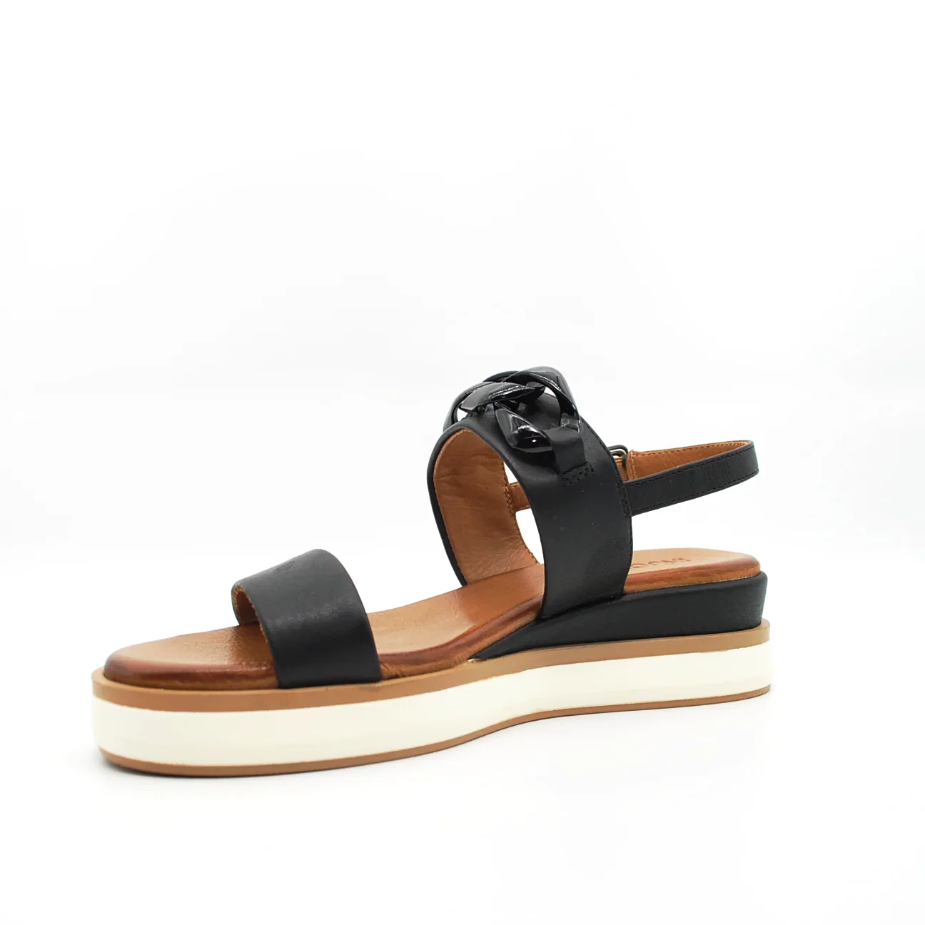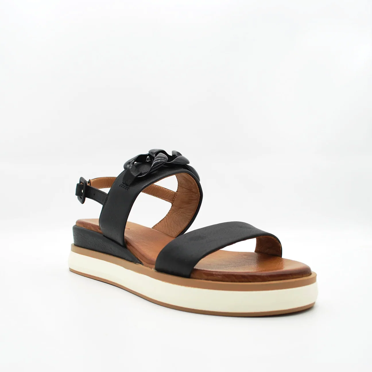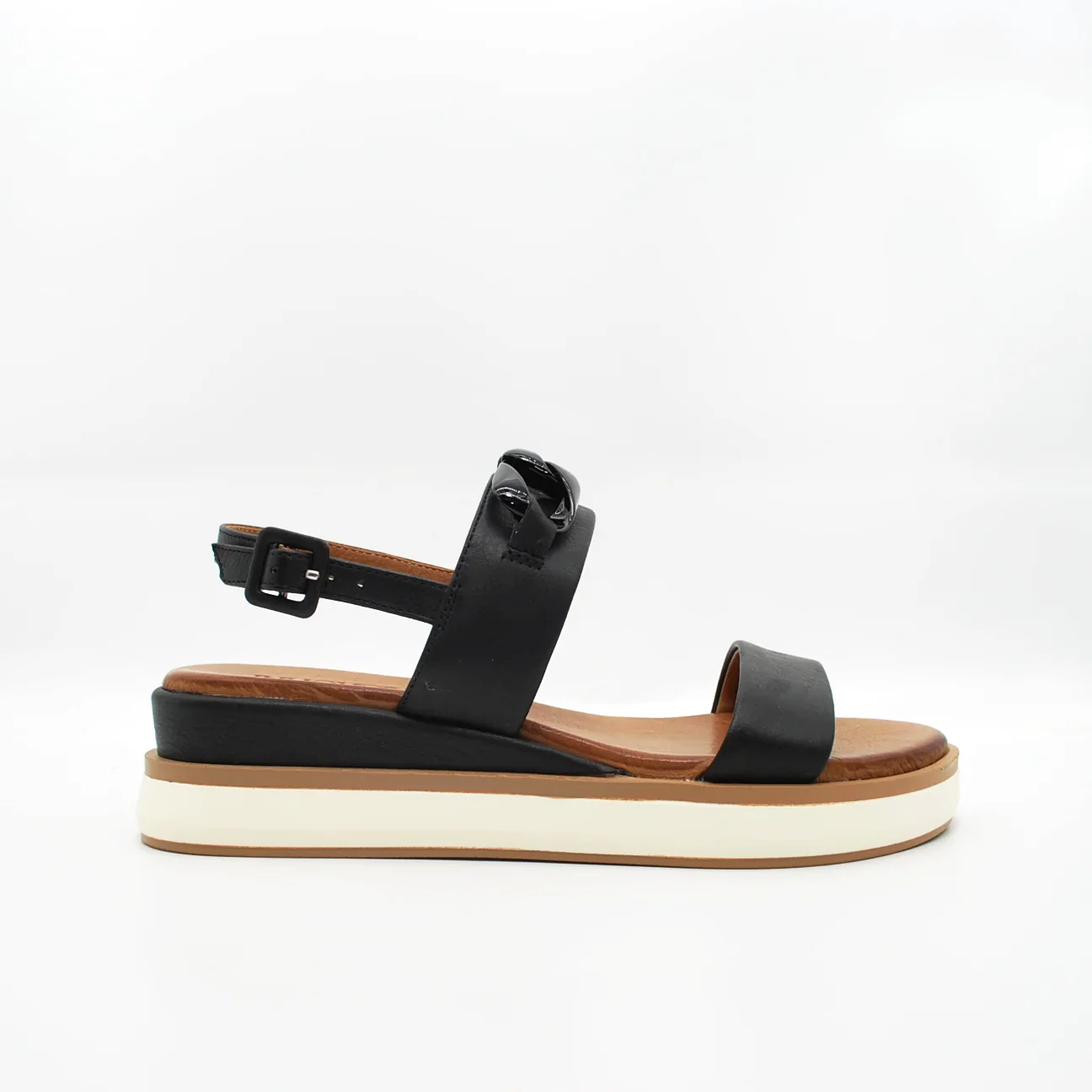 Zeppa in pelle fodera in pelle fondo in gomma extralight antiscivolosuoletta imbottita in pelle applicazione catena in tintazeppa 40 mm cinturino regolabile con fibbia