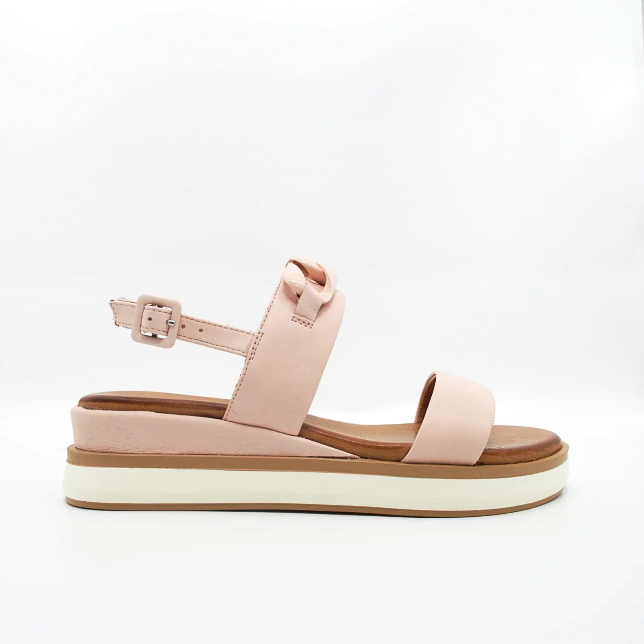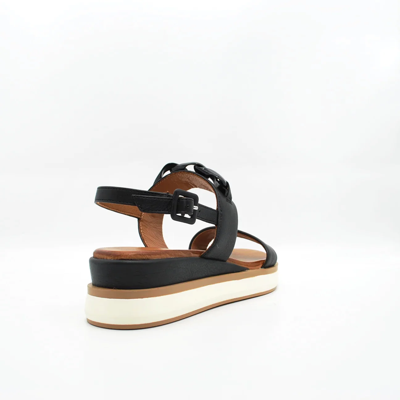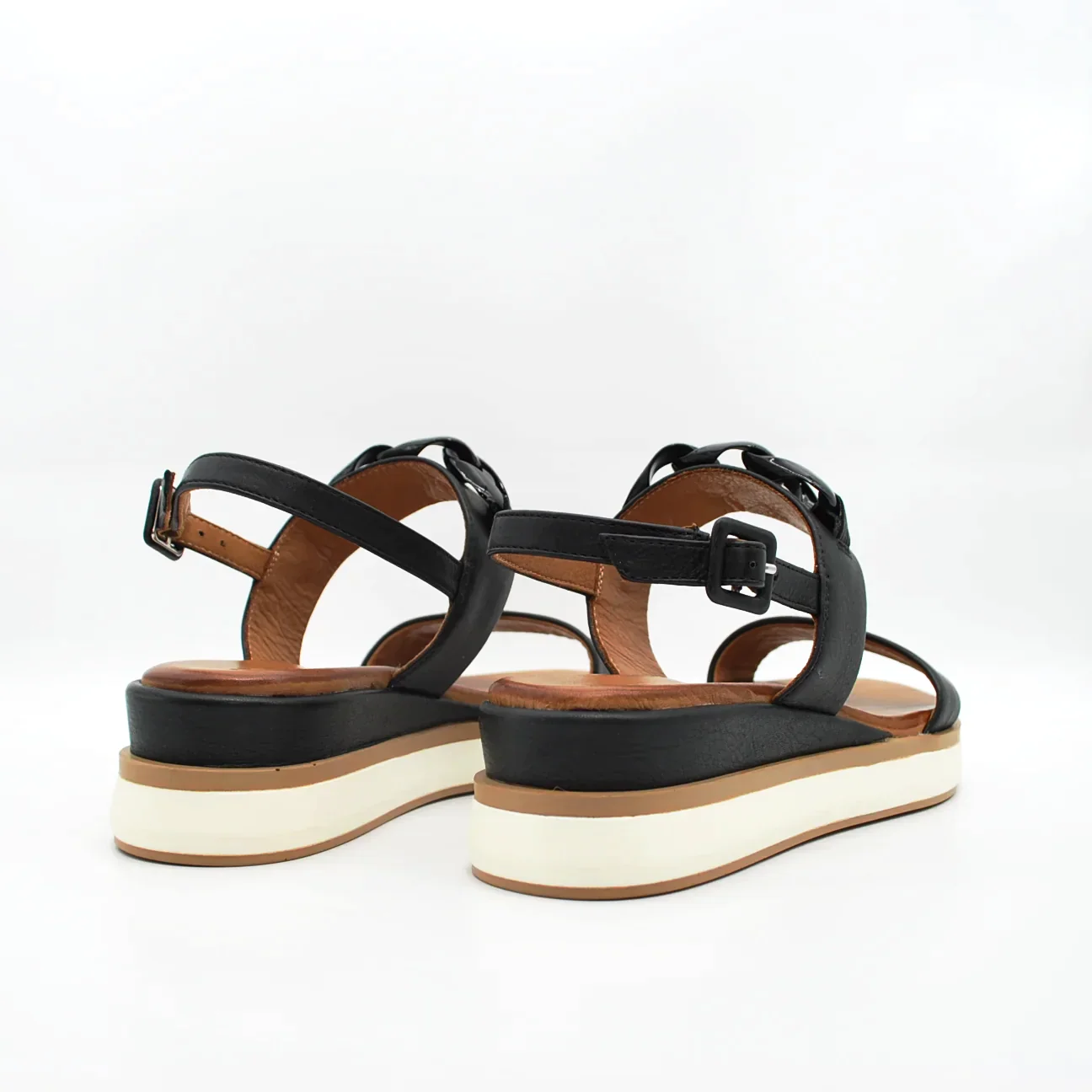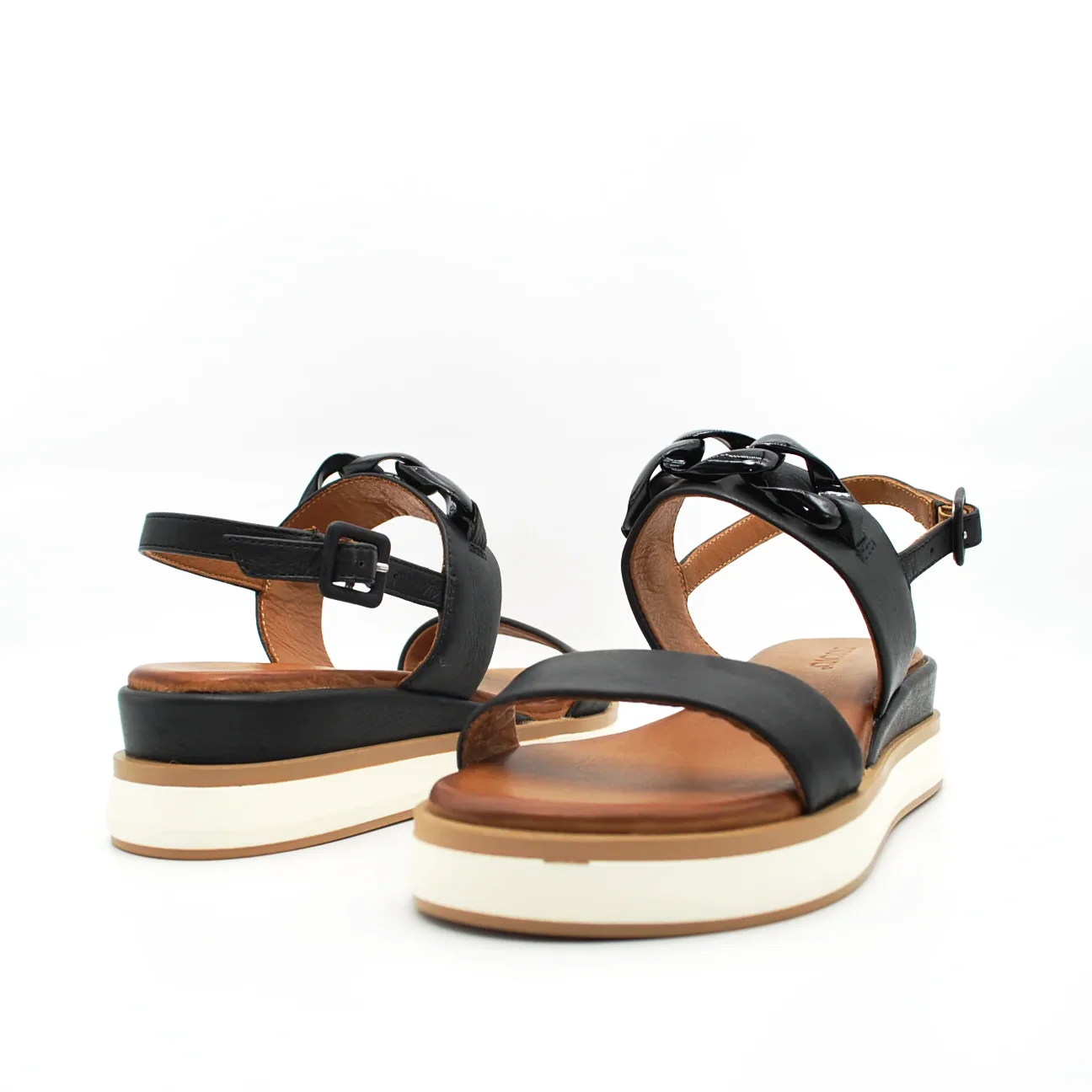 Zeppa in pelle fodera in pelle fondo in gomma extralight antiscivolosuoletta imbottita in pelle applicazione catena in tintazeppa 40 mm cinturino regolabile con fibbia