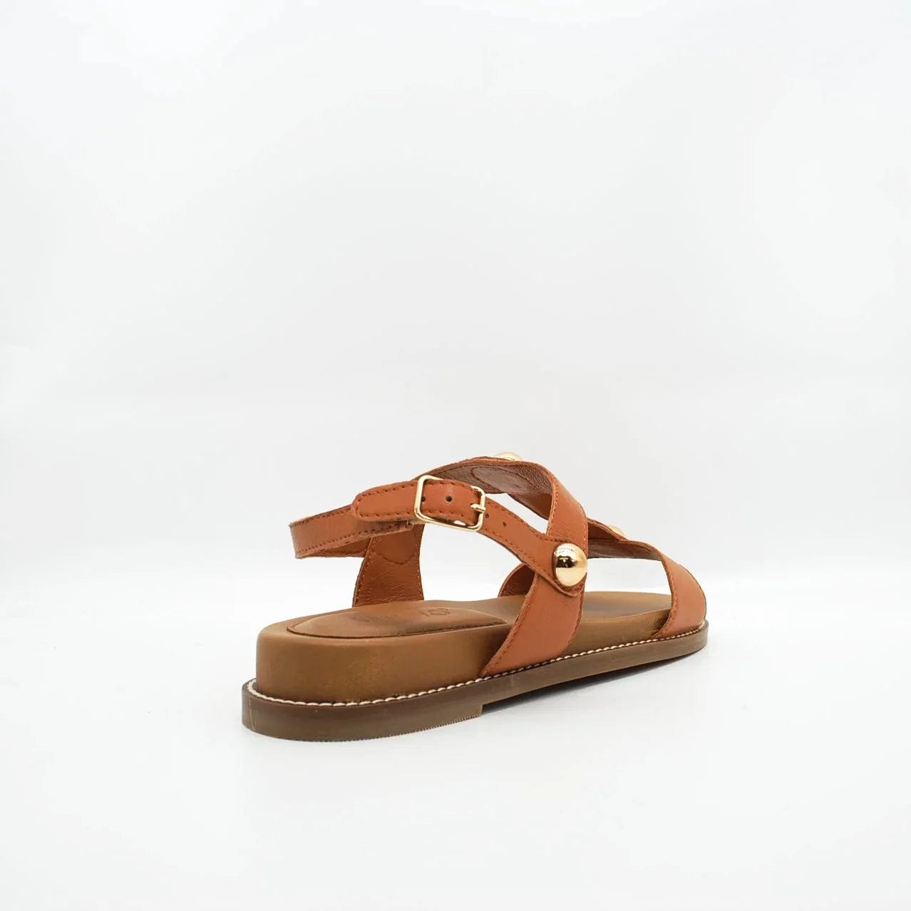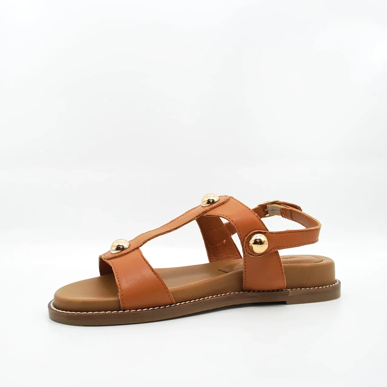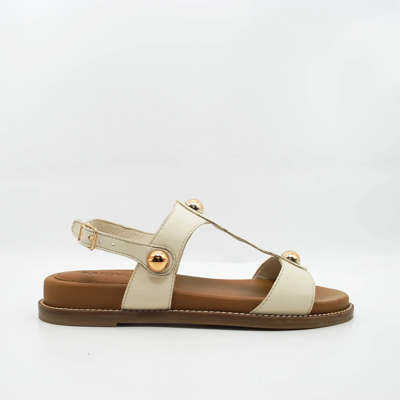 Zeppa in pelle fodera in pelle fondo in gomma extralight antiscivolosuoletta imbottita in pelle zeppa 30 mm applicazione borchie dorate cinturino regolabile con fibbia