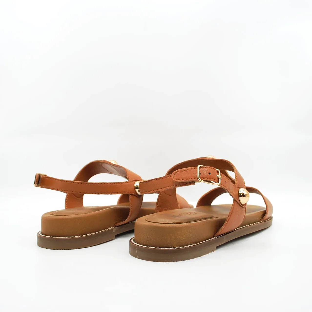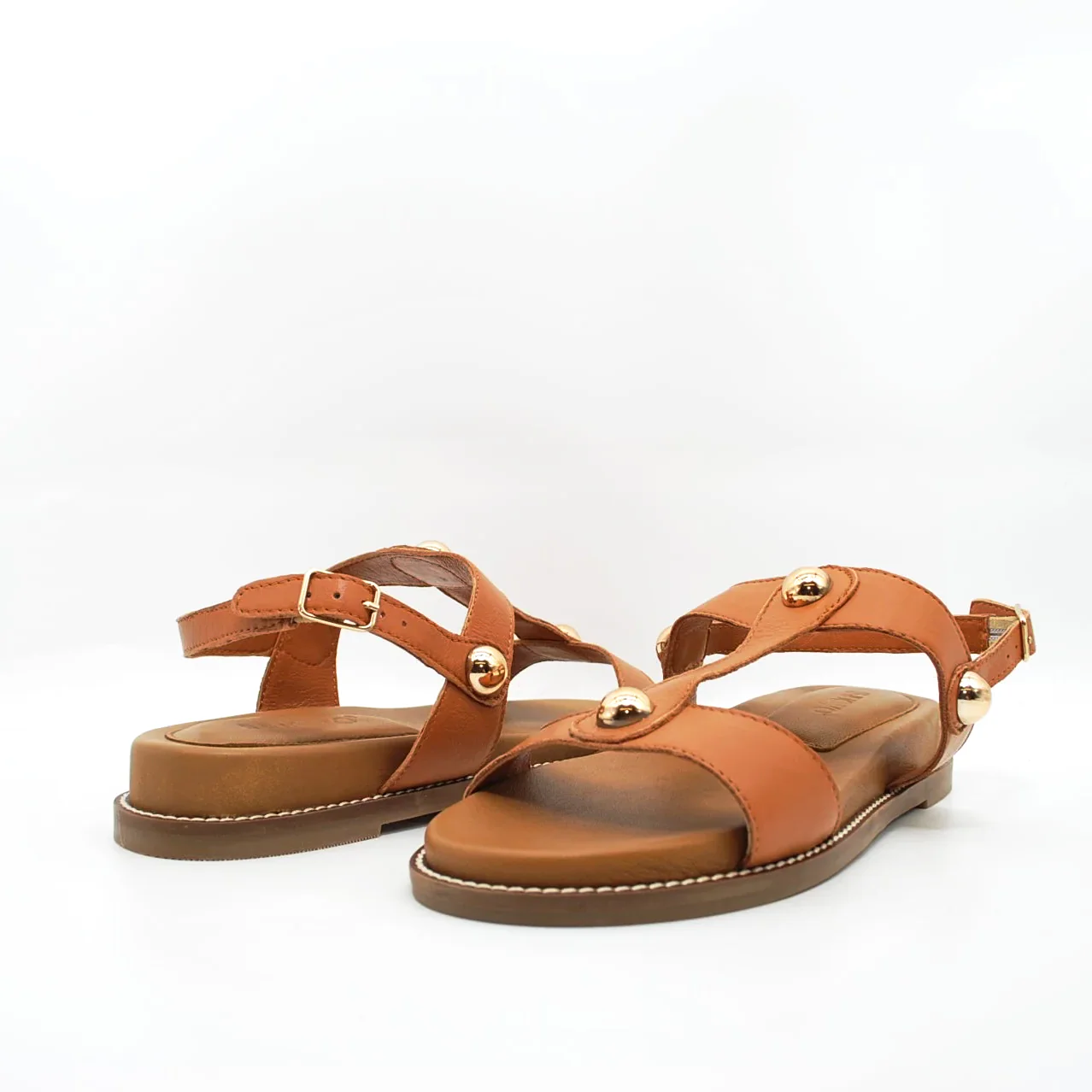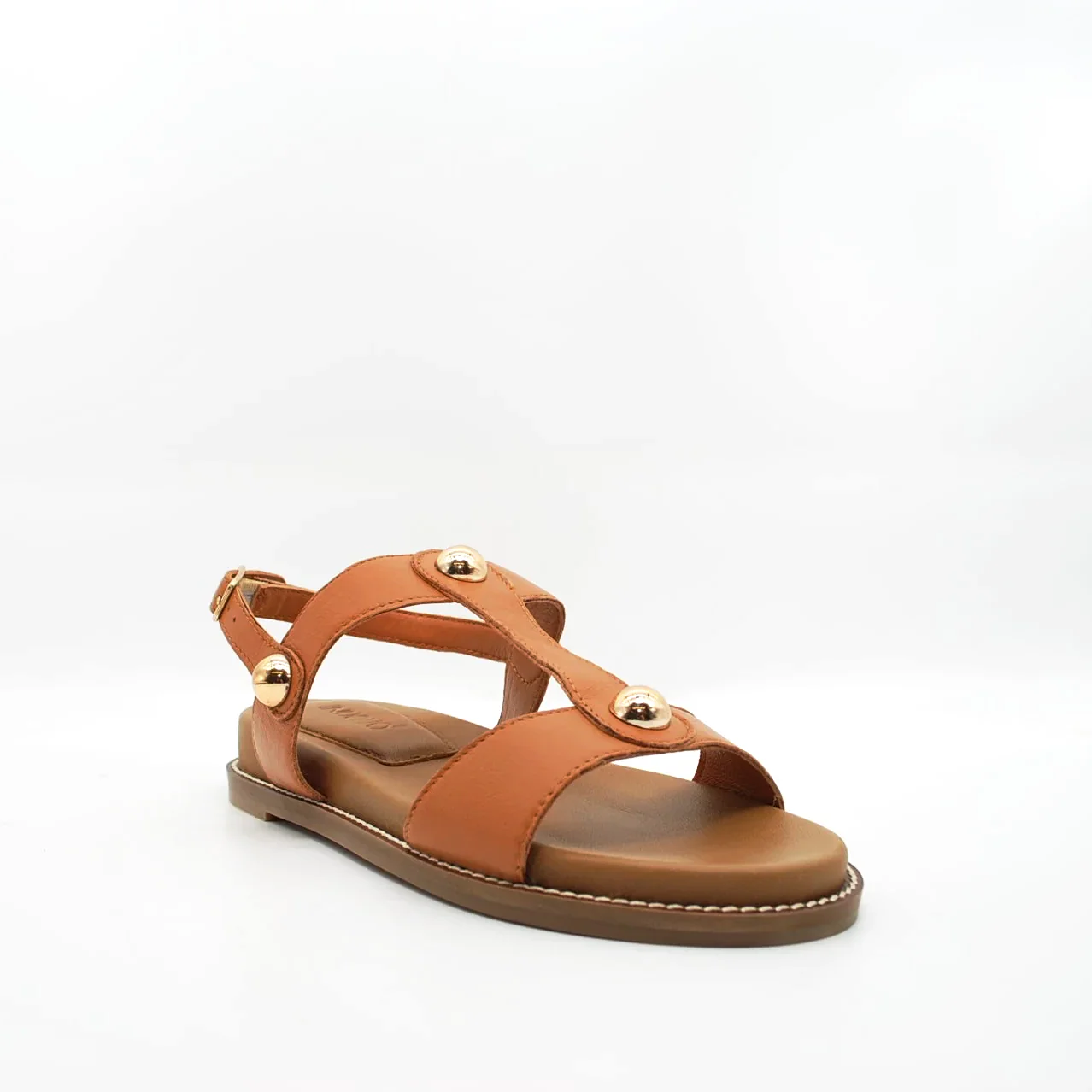 Zeppa in pelle fodera in pelle fondo in gomma extralight antiscivolosuoletta imbottita in pelle zeppa 30 mm applicazione borchie dorate cinturino regolabile con fibbia