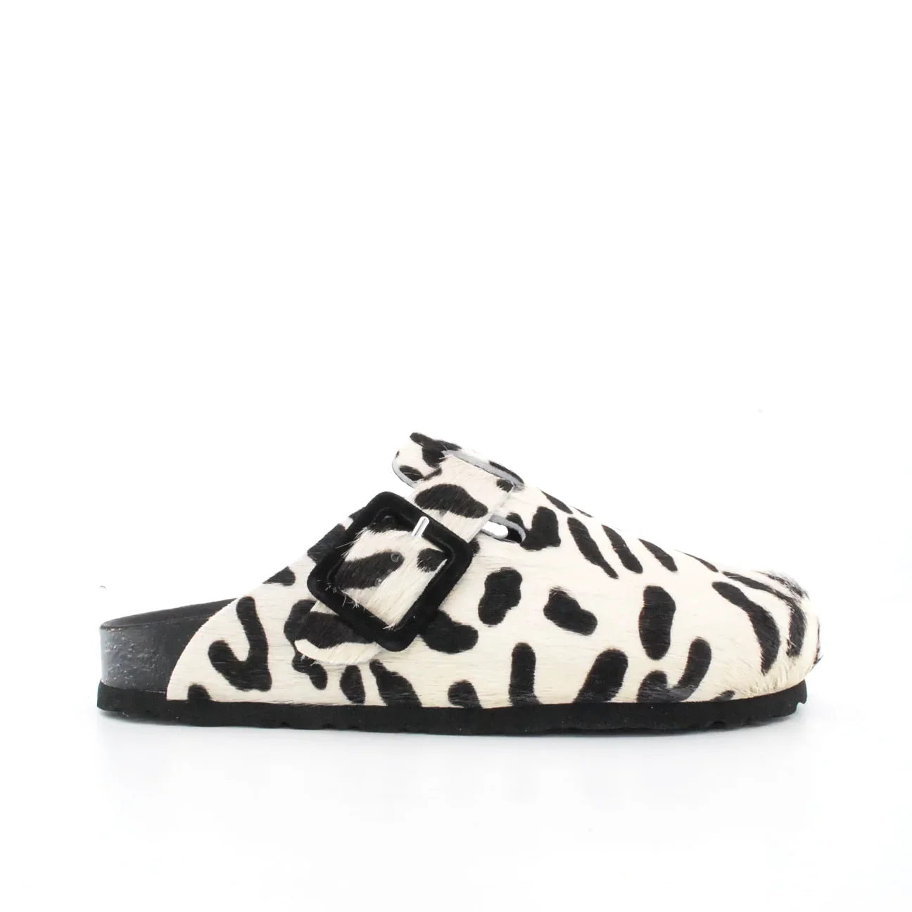 Tomaia in camoscio stampa zebra Fodera in pelle Soletta in pelle Zeppa in sughero Fascia regolabile con fibbia Suola in gomma antiscivolo Altezza zeppa 30 mm Qualitร artigianale Italiana