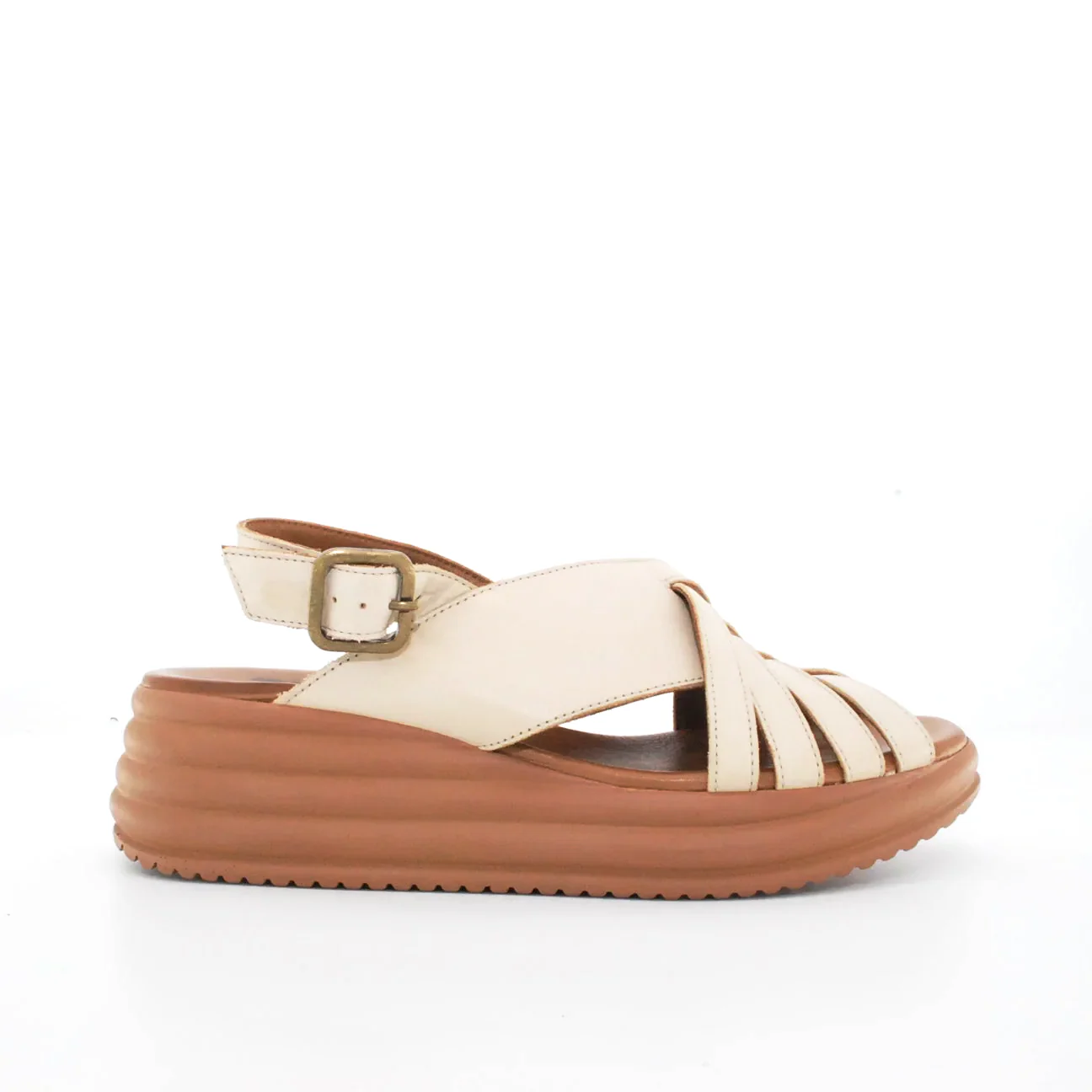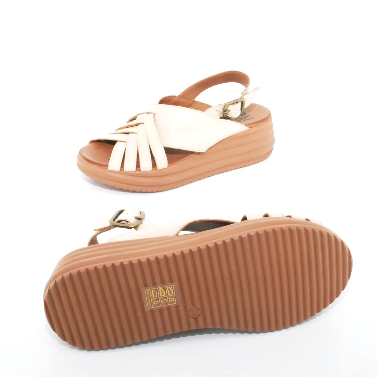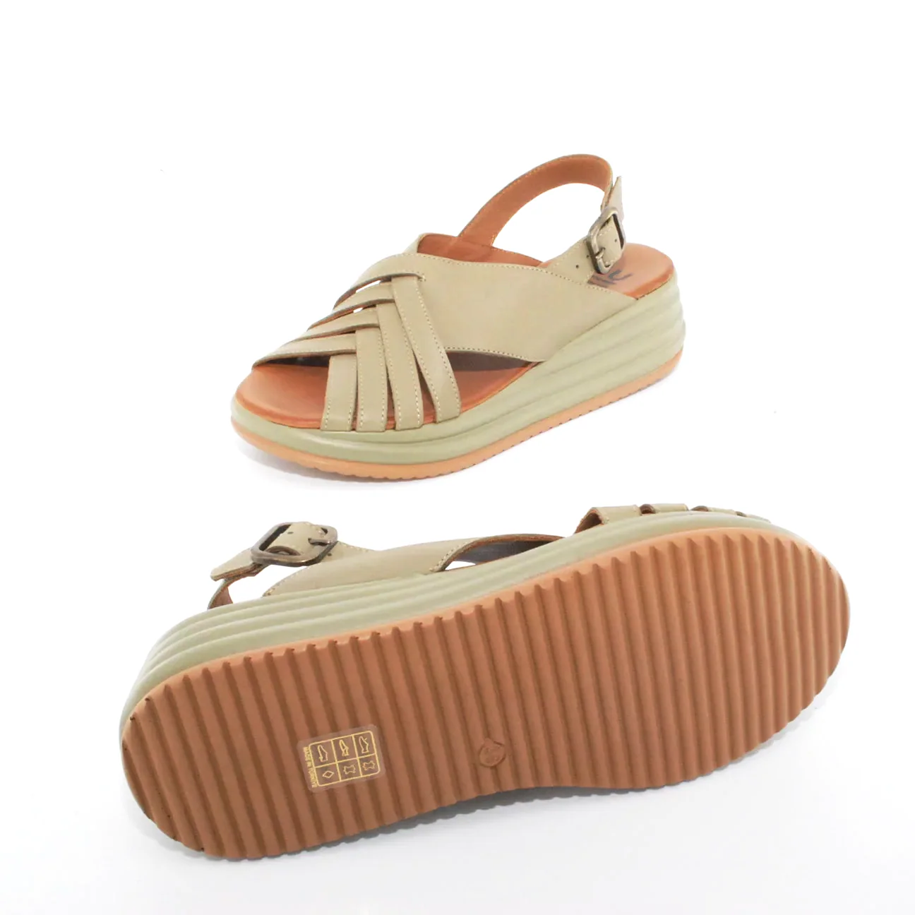 Tomaia in pelle Fodera in pelle Soletta in pelle Zeppa in resina Chiusura regolabile con fibbia Suola in gomma antiscivolo Altezza zeppa 60 mm