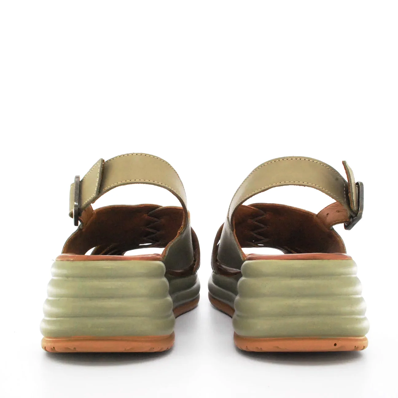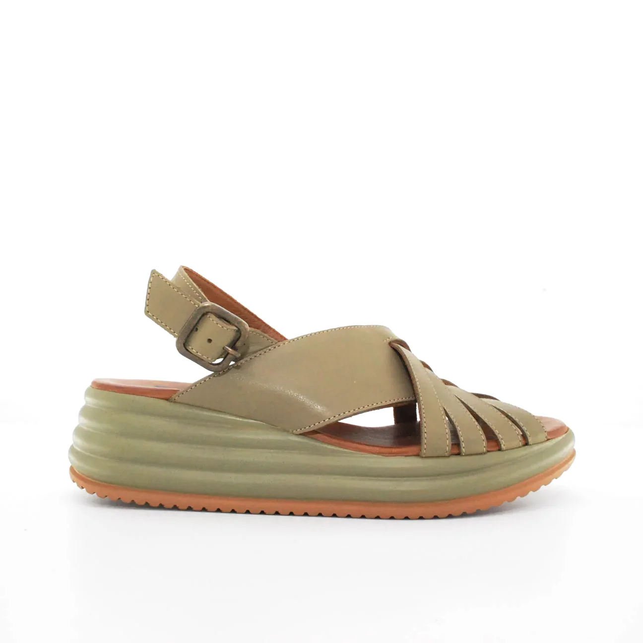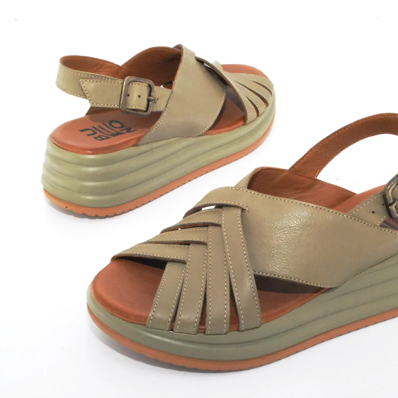 Tomaia in pelle Fodera in pelle Soletta in pelle Zeppa in resina Chiusura regolabile con fibbia Suola in gomma antiscivolo Altezza zeppa 60 mm