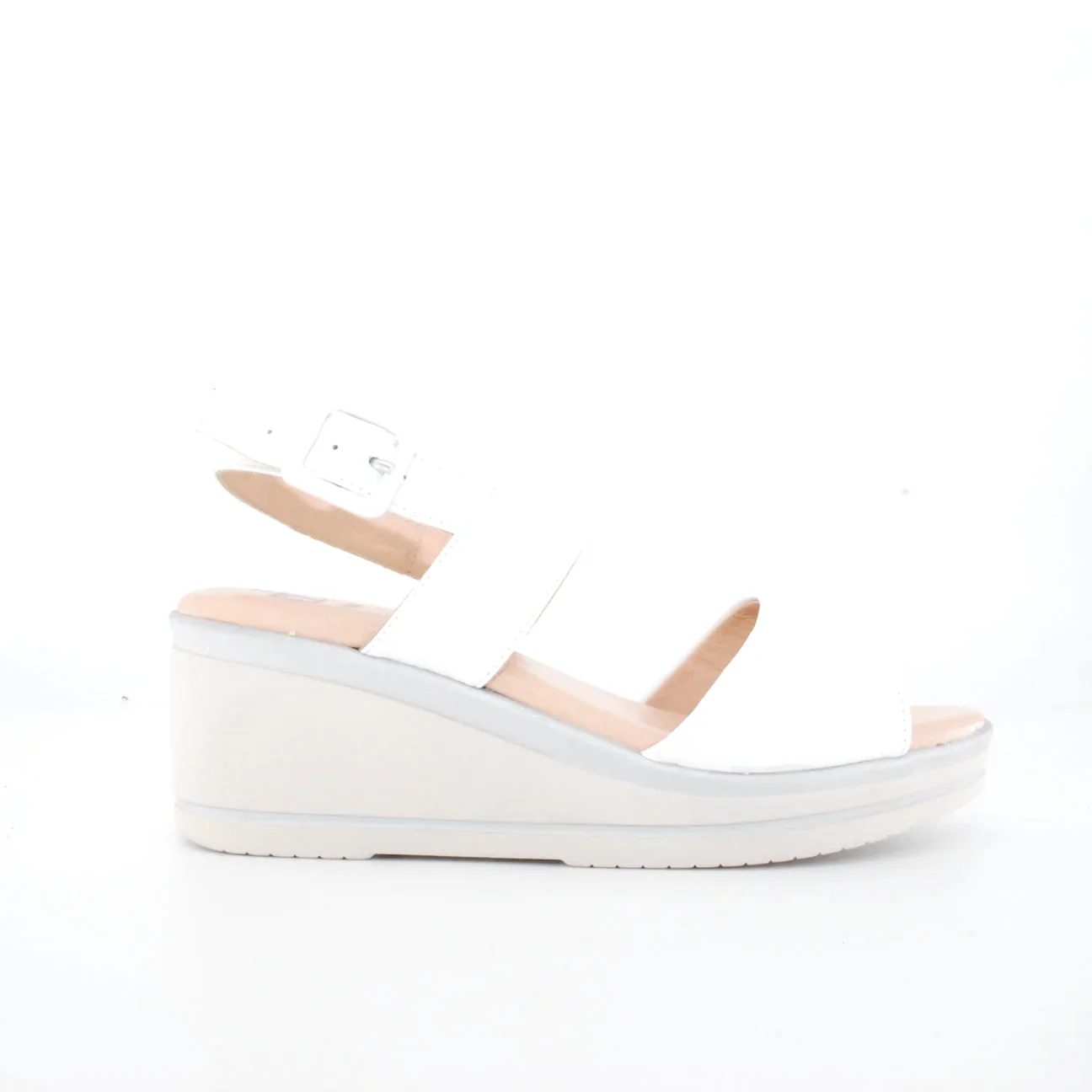 Tomaia in pelle Fodera in pelle Soletta in pelle Chiusura regolabile con fibbia Suola in gomma Altezza zeppa 60 mm Qualitร artigianale Italiana