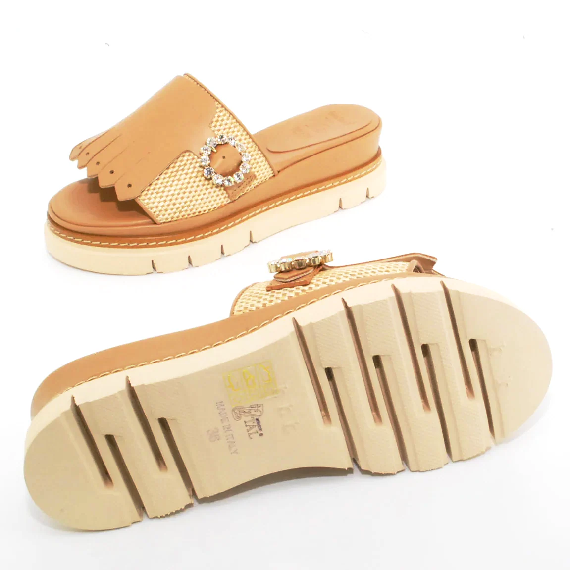 - Tomaia pelle e vimini intrecciata