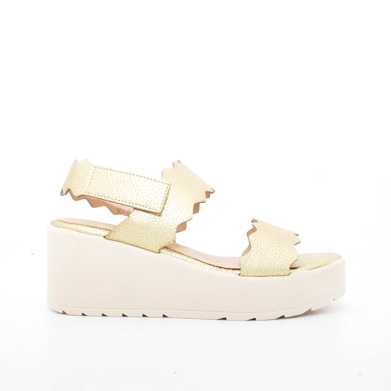 Tomaia in pelle Fodera in pelle Soletta in pelle Chiusura regolabile con strappo Suola in gomma antiscivolo Altezza zeppa 60 mm