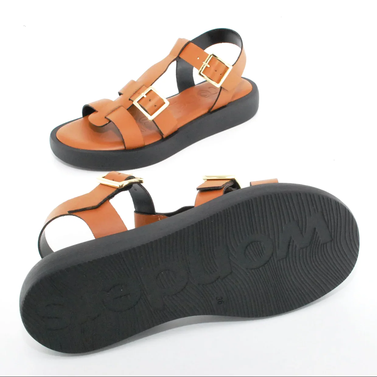 Tomaia in pelle Fodera in pelle Soletta in pelle Chiusure regolabili con fibbie Suola in gomma antiscivolo Altezza zeppa 30 mm
