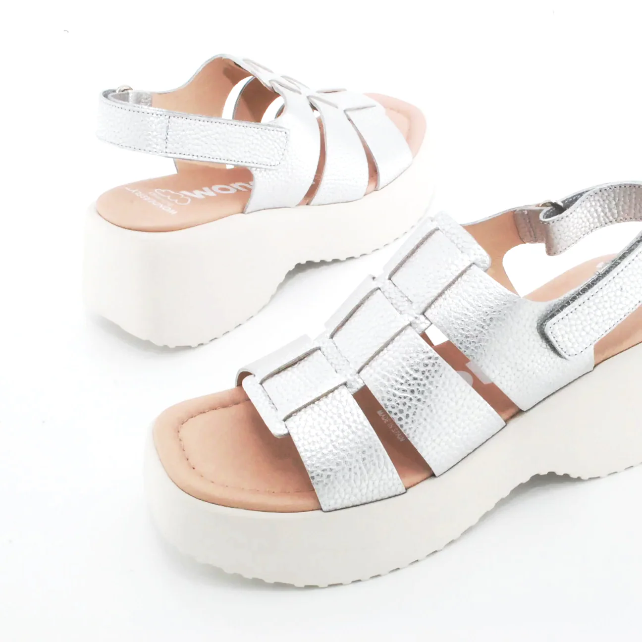 Tomaia in pelle Fodera in pelle Soletta in pelle Chiusura regolabile a strappo Suola in gomma antiscivolo Altezza zeppa 60 mm